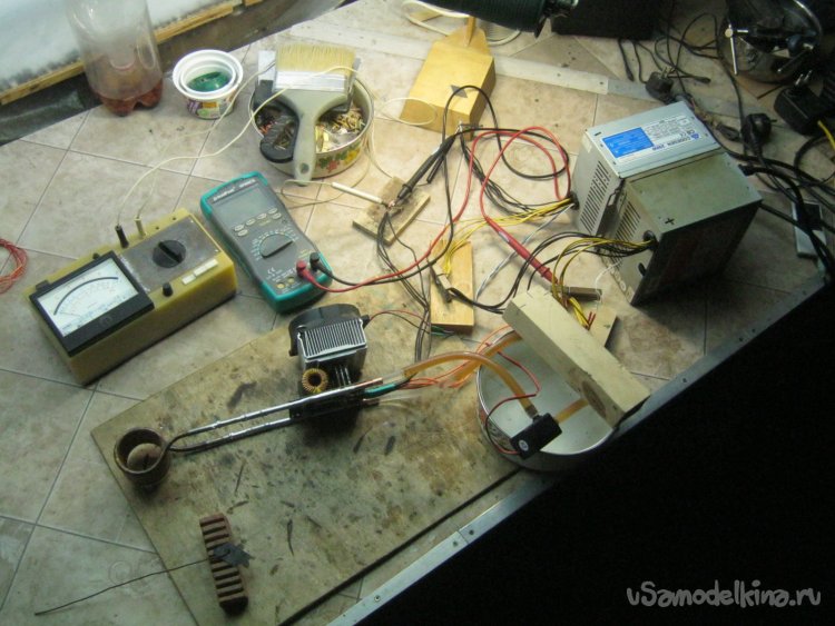 Фото 9. Собранный модуль с усиленным охлаждением, доработанные БП. Окончательная проверка макета. Транзисторы нагреваются умерено, индуктор и вовсе прохладен как июньский вечер в пермском крае – водяное охлаждение, великое дело!