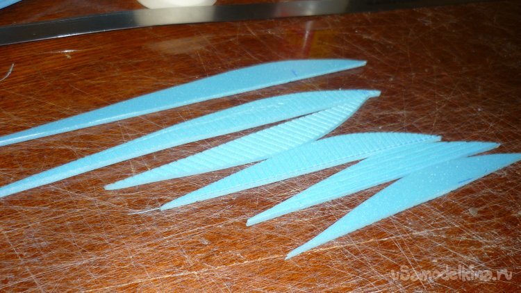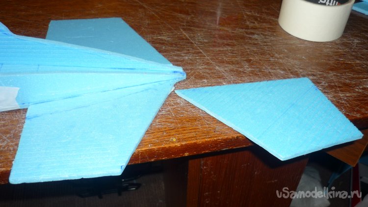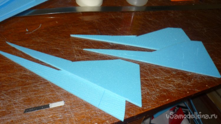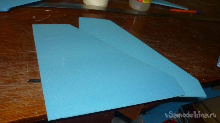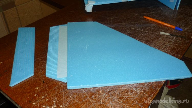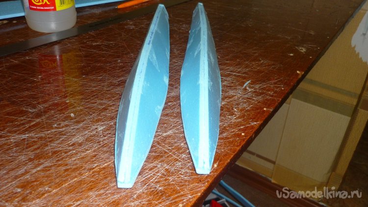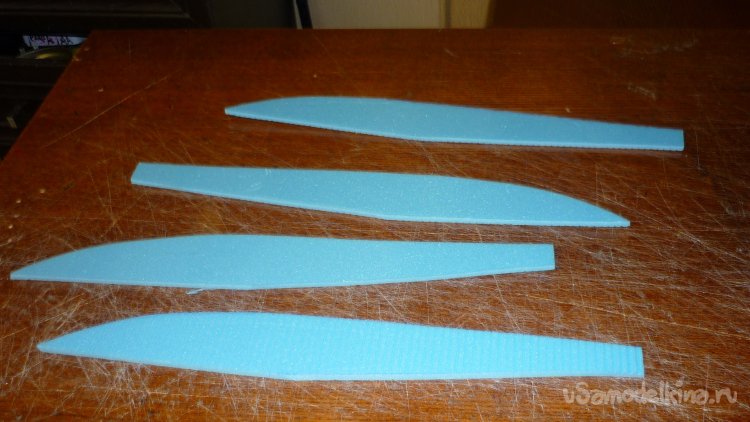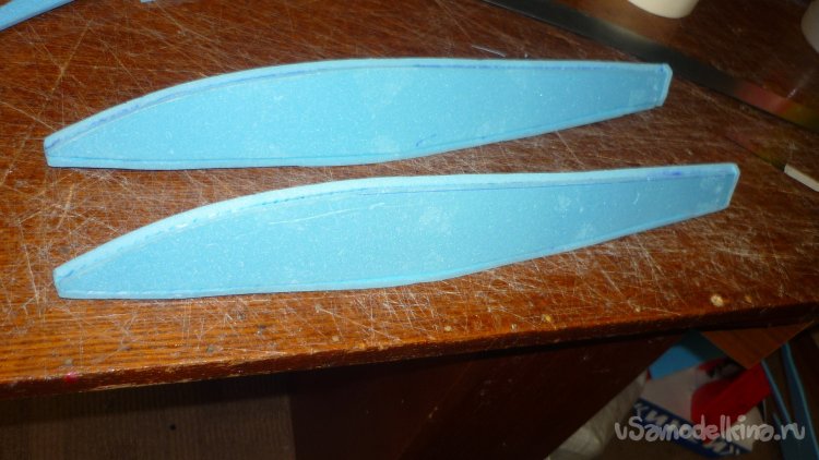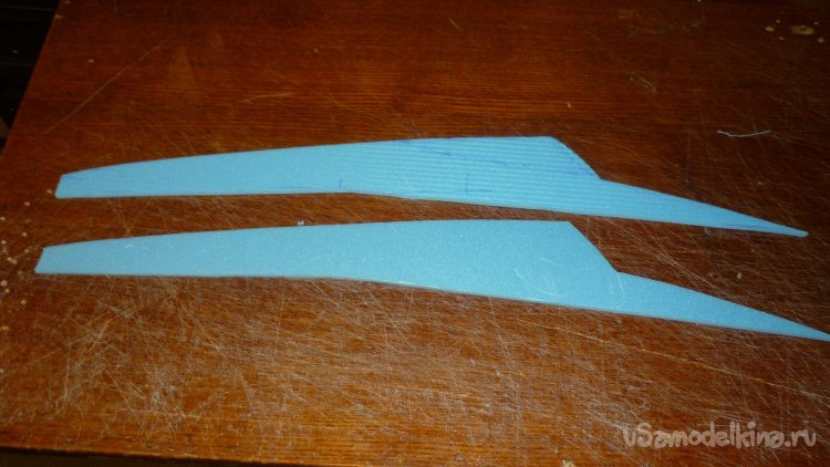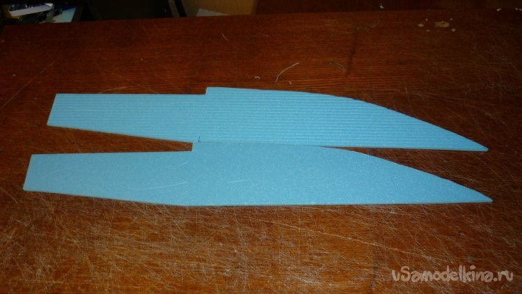 Вырезал заготовки для малых, боковых килей. Склеиваются в два слоя.