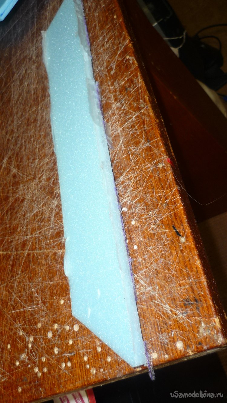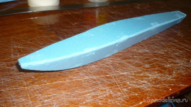 Делаю прорезь в киле для установки мотора с винтом. Подгоняю размеры киля.