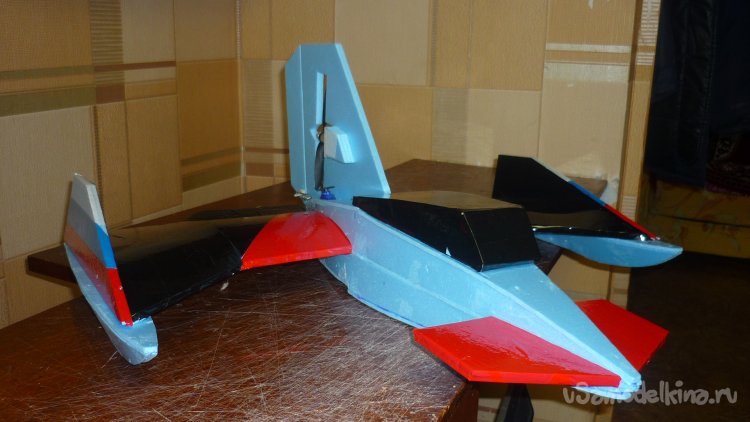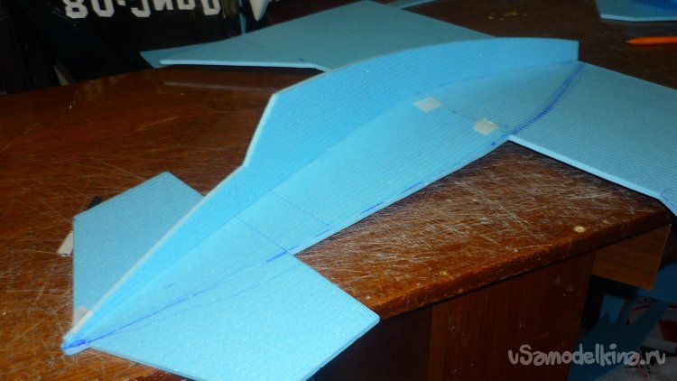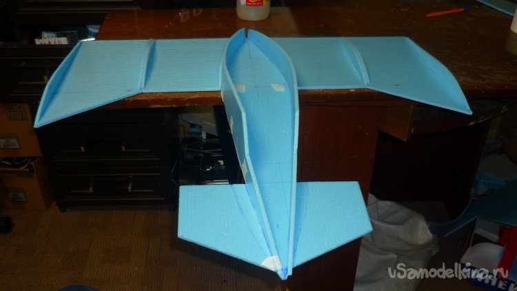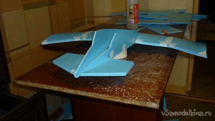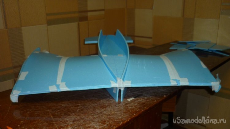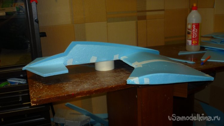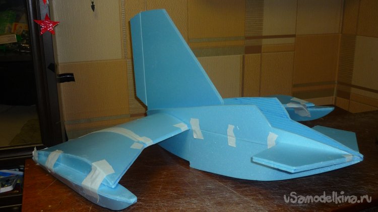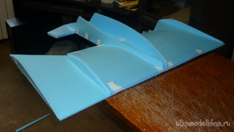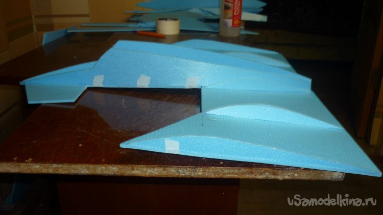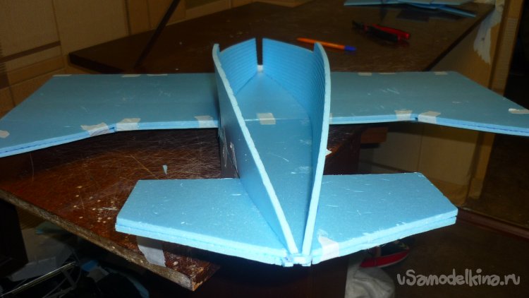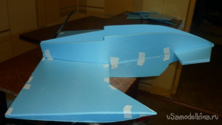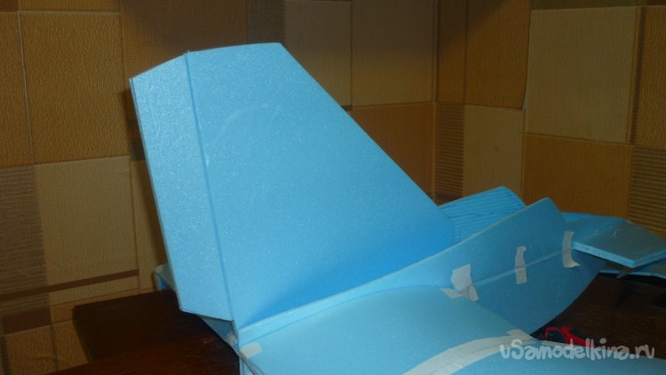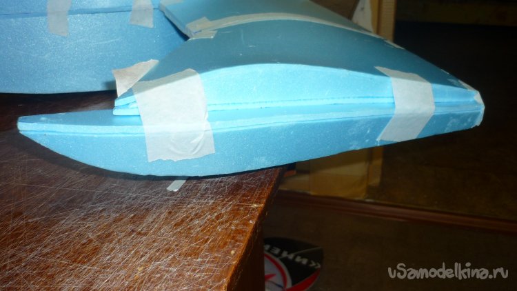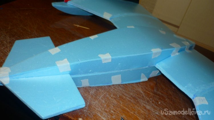 Заканчиваю обтяжку модели цветным скотчем, смонтировал киль.