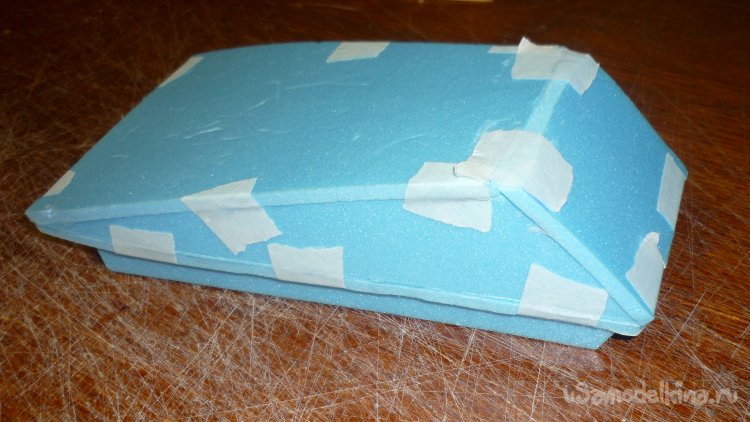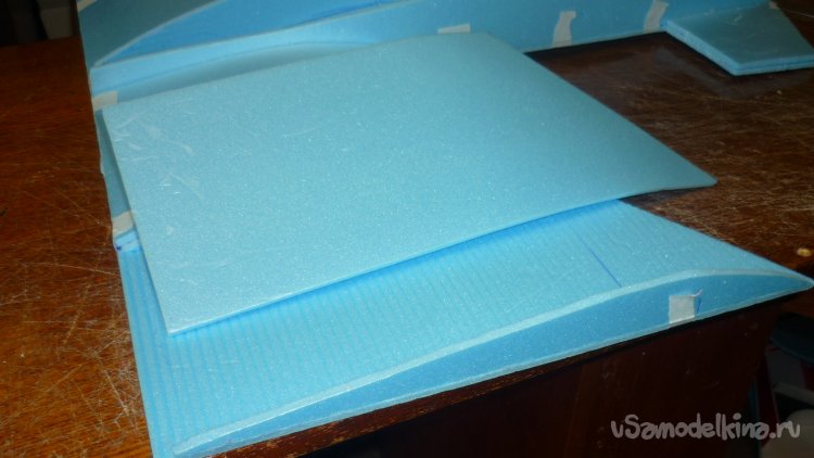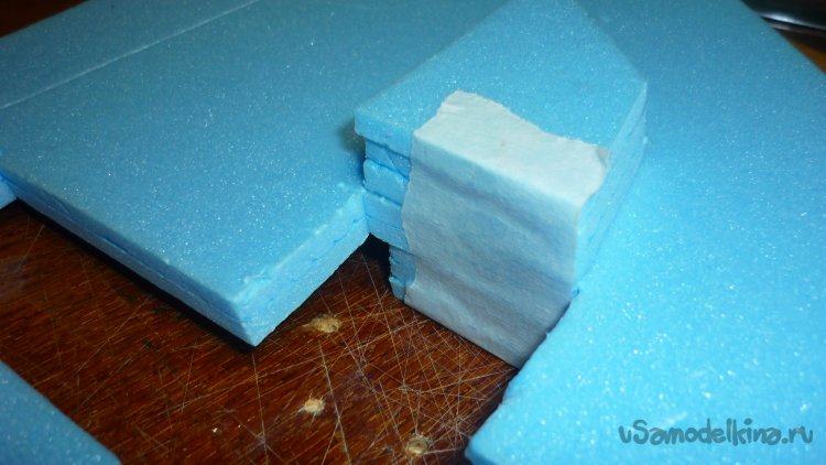 Вклеиваю несколько слоёв подложки, делаю бобышку, для вклеивания моторамы.