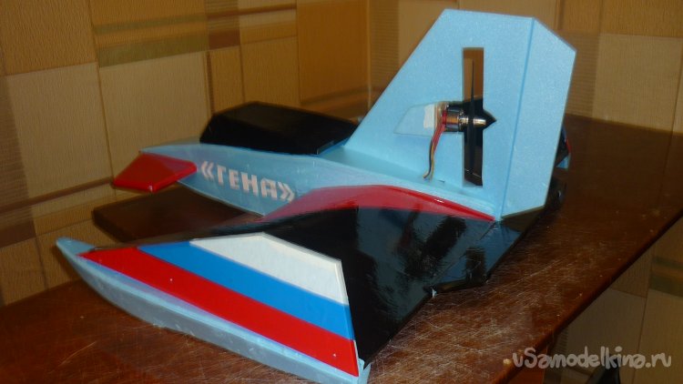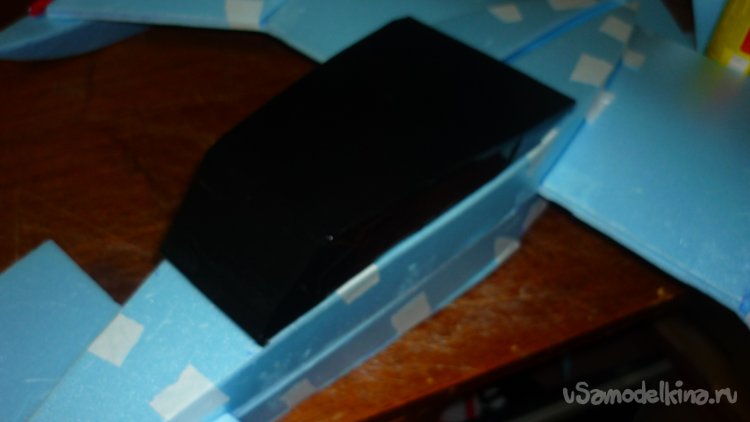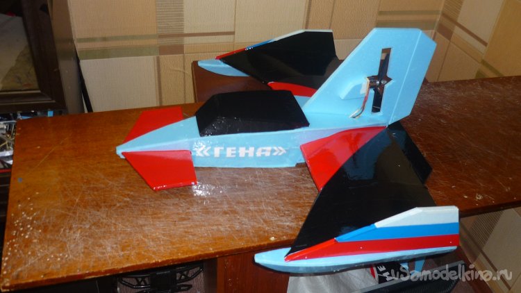 Немного изменил геометрию боковых килей, склеил в два слоя, обтянул цветным скотчем и смонтировал на место.