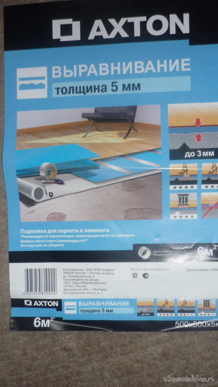Модель строится из простой, листовой подложки под ламинат «AXTON», размером 800 х 500 х 5 мм.