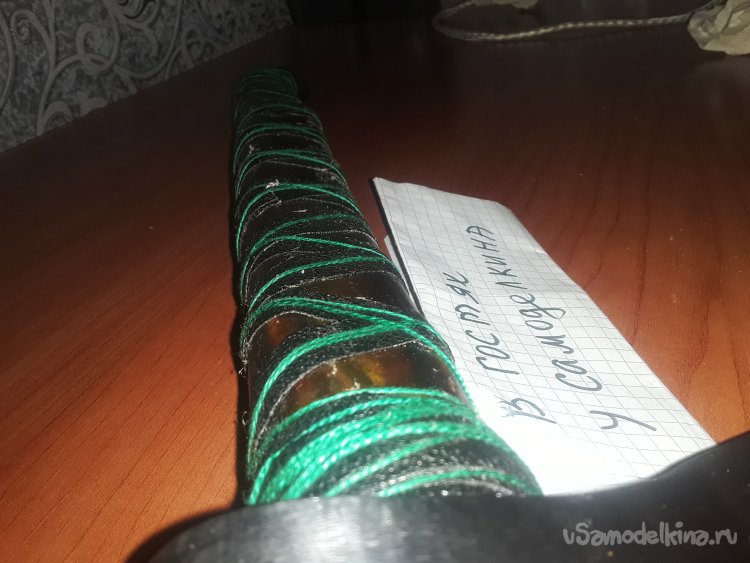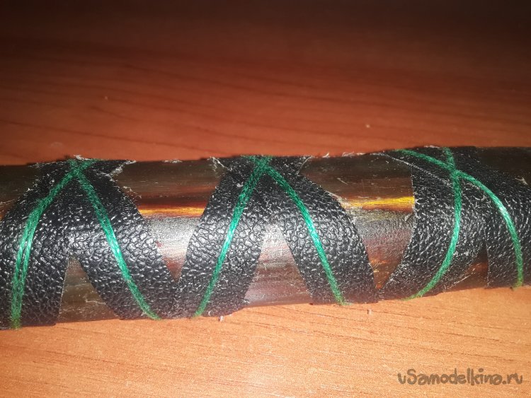 Далее, для того чтобы закрепить топор делаю продольный распил 3см ножовкой. Для клина отрезал кусок нержавейки шириной 5см, а толщенной 7мм где-то 3см длиной, и зажав в тиски круглым и треугольным напильником сделал узор для украшения. Потом на наждаке от формировал клин после этого забил топор на ручку и клином зафиксировал смазав эпоксидным клеем. Далее для защиты древесины прошелся наждачной бумагой 80ед и обработал растопленным в воске пылью канифоли. После высыхания наждачной бумагой снял верхний слой и еще 3 раза сделал пропитку. На следующий вечер прошелся по ручке 2к наждачной бумагой и отполировал на войлочном круге с пастой номер 1. Для красоты из кож зама вырезал длинную полоску 1см и намотал на ручку, мотал все с использованием клея потом сверху намазал прочную нить для усиления в 2 раза. После высыхания полировал сам топор.