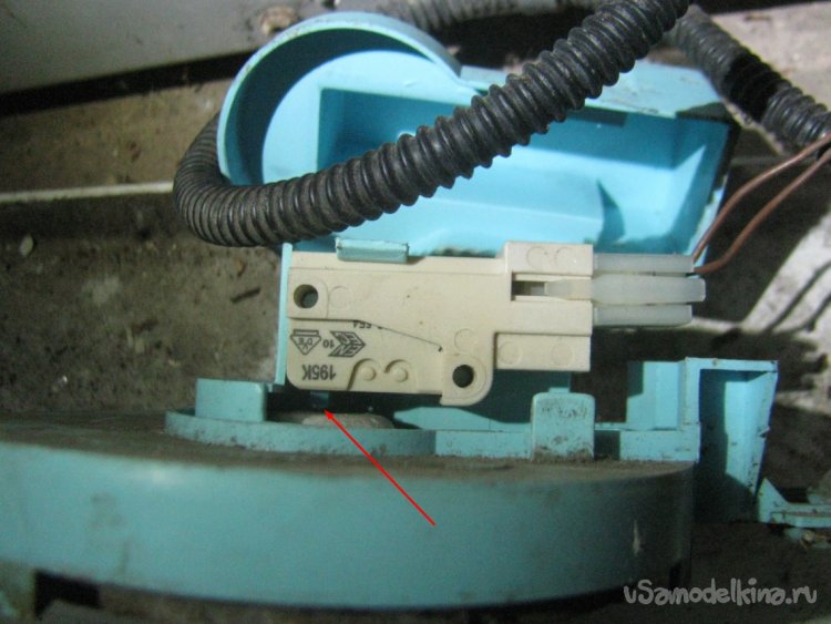 Состоит этот датчик из пенопластового поплавка и концевика. Когда поплавок всплывает, концевик нажимается и стиралка в ужасе начинает выкачивать воду, считая, что хозяина затапливает.