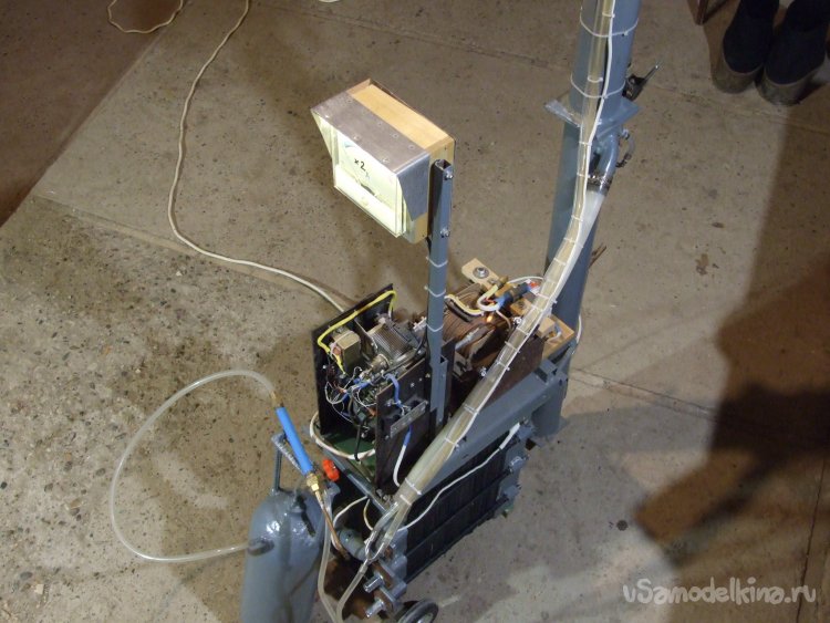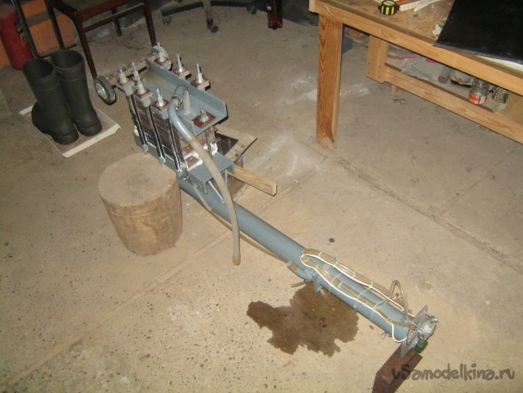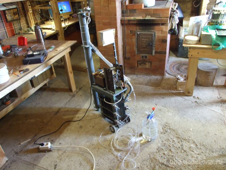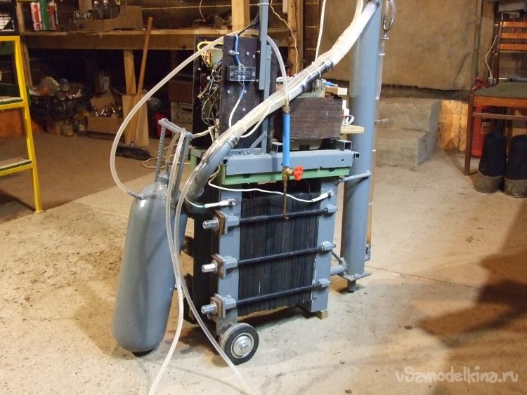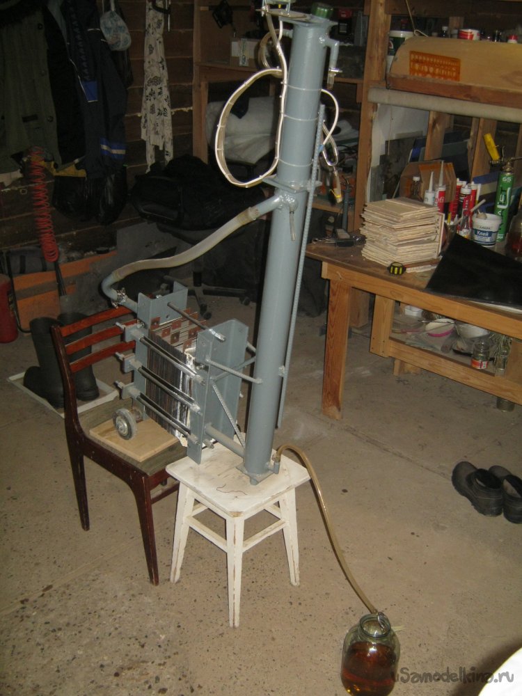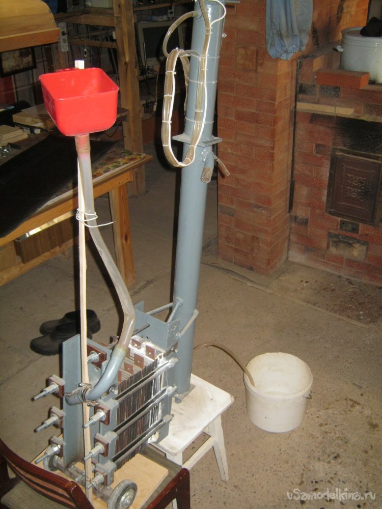 Фото 5. Взгромоздив реактор на возвышение, слил остатки щелочи-электролита через отсоединенный сверху шланг-уровнемер.