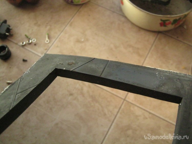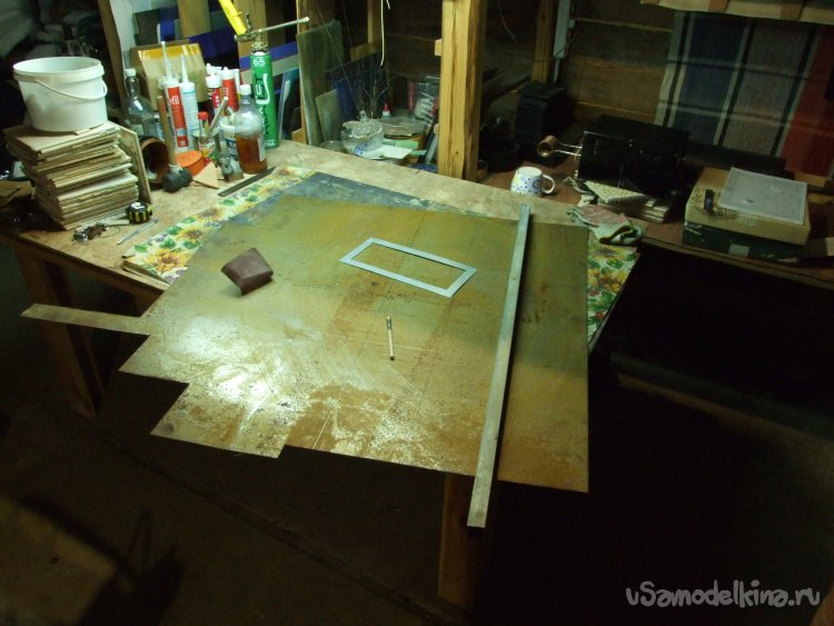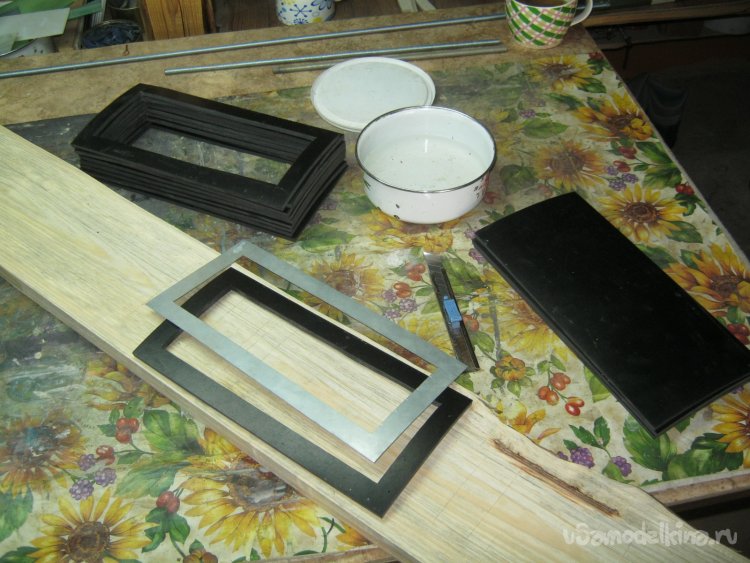 Фото 11. Плотную нетонкую резину резал острым строительным ножом, смачивая лезвие водой. Внутренний контур прокладки вырезал под металлический шаблон из оцинкованной кровельной стали выпиленный ювелирным лобзиком.