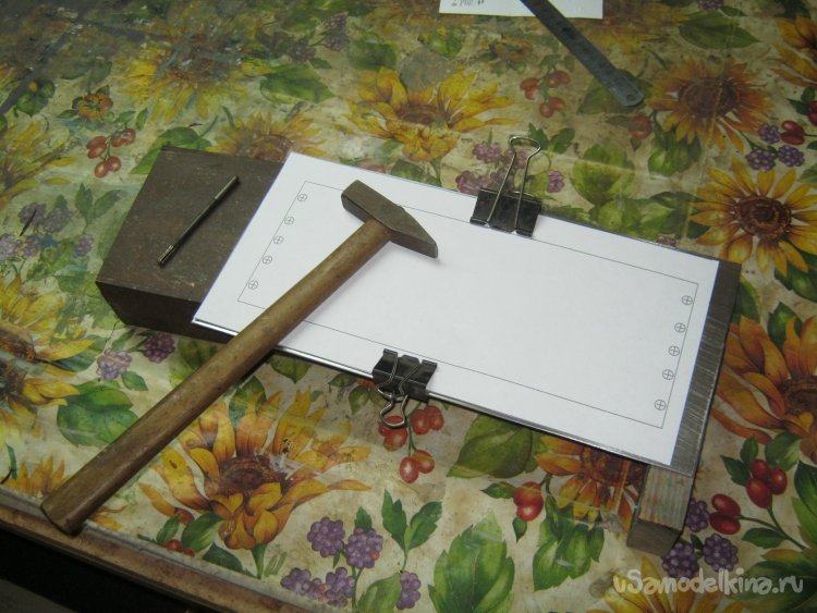 Фото 13. Отверстия для перетекания между ячейками электролита и газа однообразно разметил по бумажному шаблону накернив их центры.