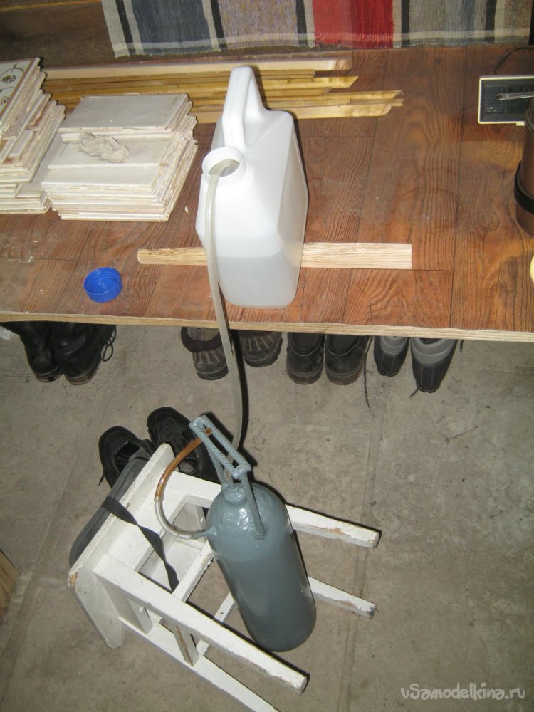 Фото 2. Исходный вариант прибора. Водяной затвор из 5-л ПЭТ бутылки с вклеенными в крышку патрубками.