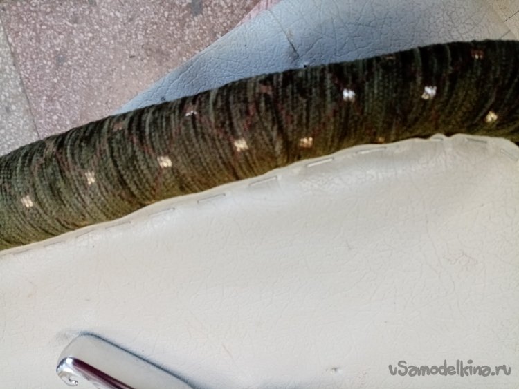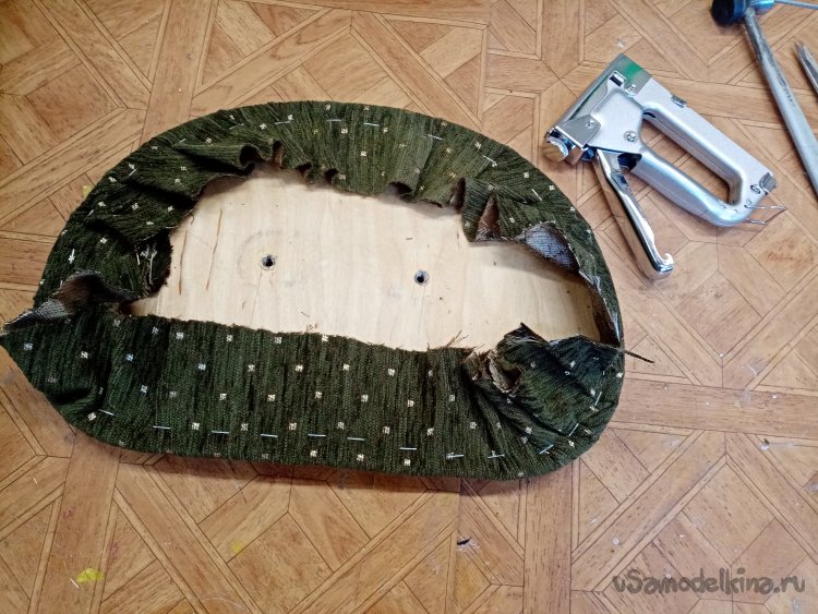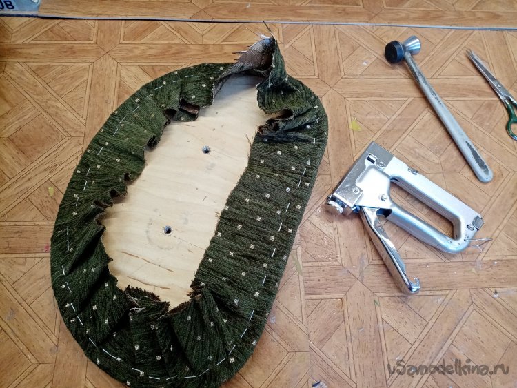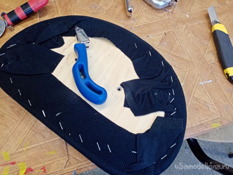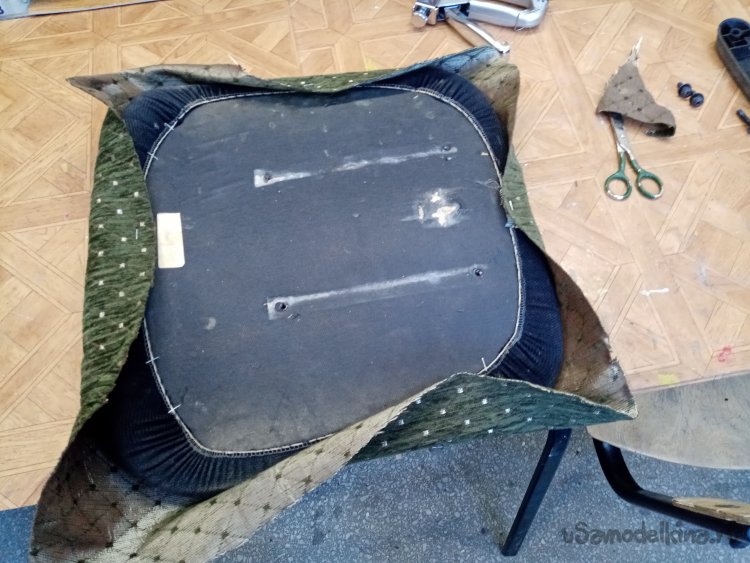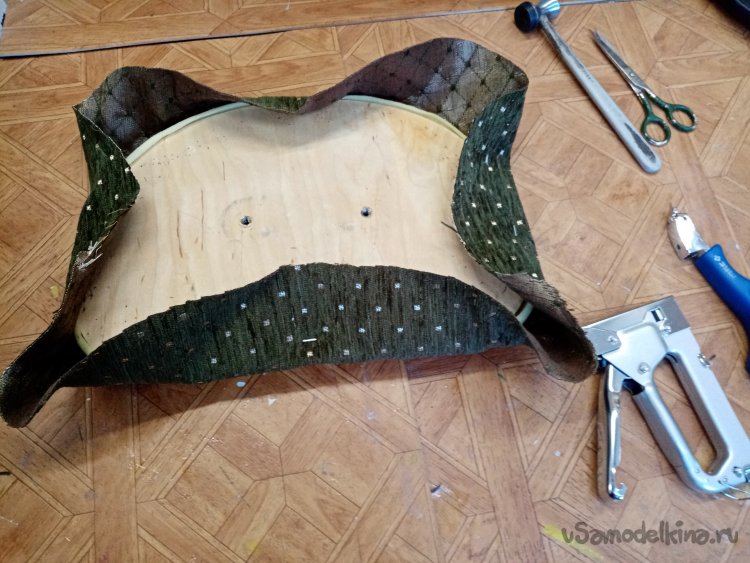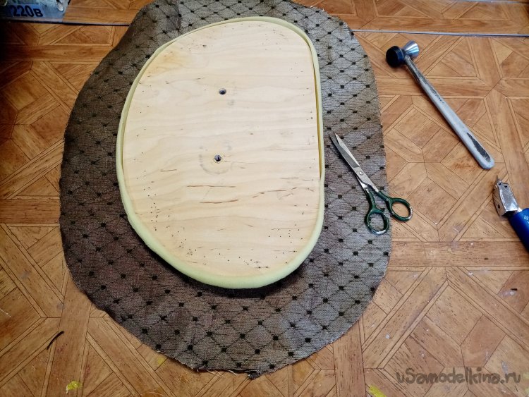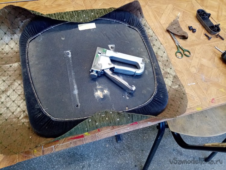 Сиденье готово. На внешней стороне обивочная ткань натянулась ровно, без утяжин.