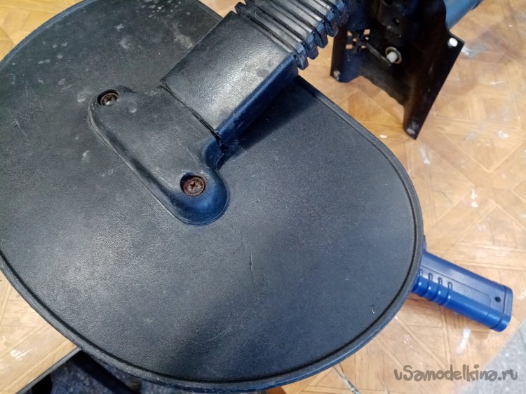 Нужно обтянуть спинку. Для этого снимаю пластиковую накладку. Некоторое время назад проделывал подобную процедуру. И сейчас при помощи «великого размыкателя девайсов» справился быстро. Практически не повредив краев пластика.