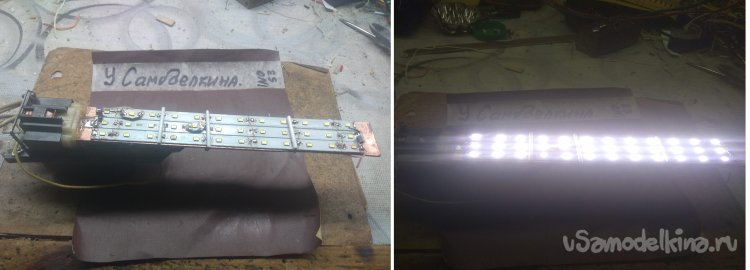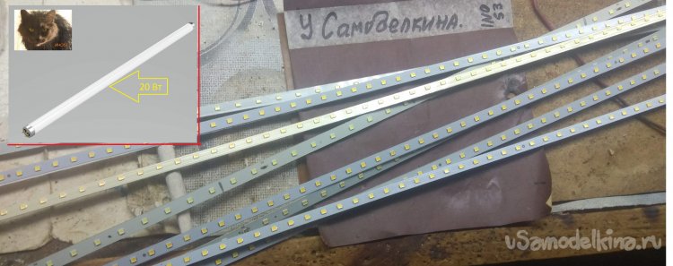 А вот источник света - полоски со светодиодами от вот таких 20-ваттных ламп.