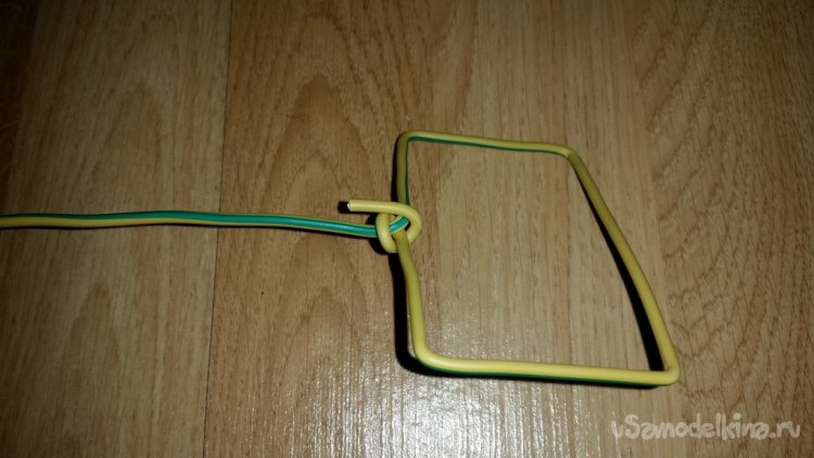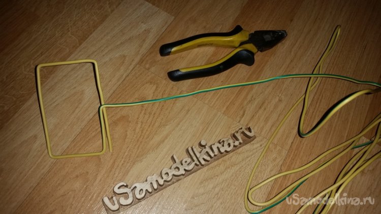 Получив прямоугольник, делаю замок из ранее оставленного излишка в начале проволоки. Для этого просто загибаю конец проволоки и направляю его в сторону будущей ручки.