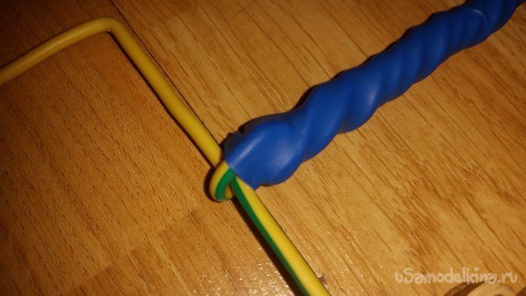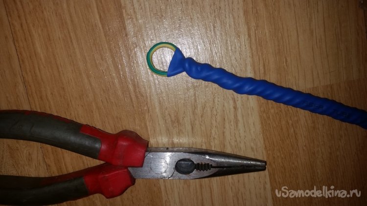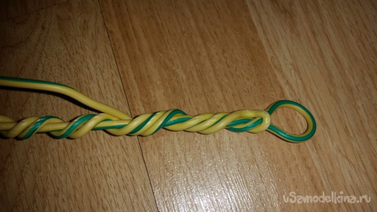 Теперь приступаю к изготовлению ручки. Мне понадобится длина ручки примерно 30 см. На такой длине проволока довольно мягкой будет, поэтому ручку совью из нескольких витков. Думаю 3-4 жилы будет достаточно. Благо запас длины проволоки нормальный. Ну а необходимую жесткость подберу опытным путём.