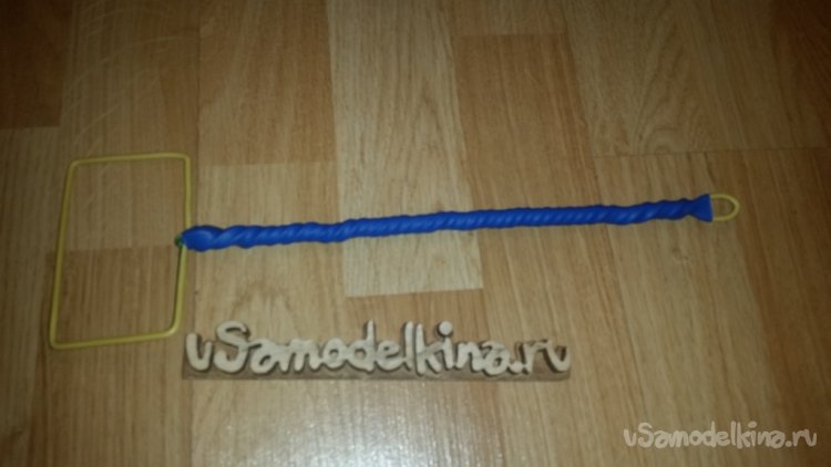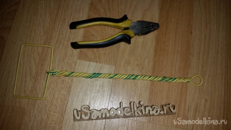 Дальше начинаю скручивать проволоку в лёгкий жгут в сторону квадрата. Сначала хотел свивать обе проволоки равномерно, но потом подумал что изменится длина ручки. Поэтому решил одну жилу оставить ровной, а вокруг неё намотать вторую с большим шагом.