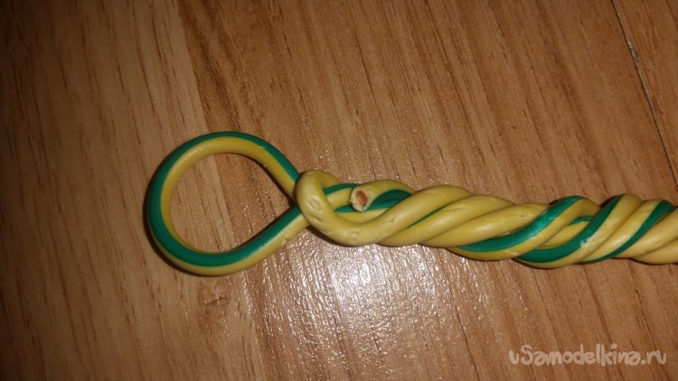 Намотав 4-ый виток, разворачиваю и двигаюсь снова к кольцу. Ручка получится из пяти жил. Вот такой жёсткости вполне достаточно. Мне понравилось что я угадал с шагом первого витка. Получилось остальные вложил внутрь и получилось довольно прилично.