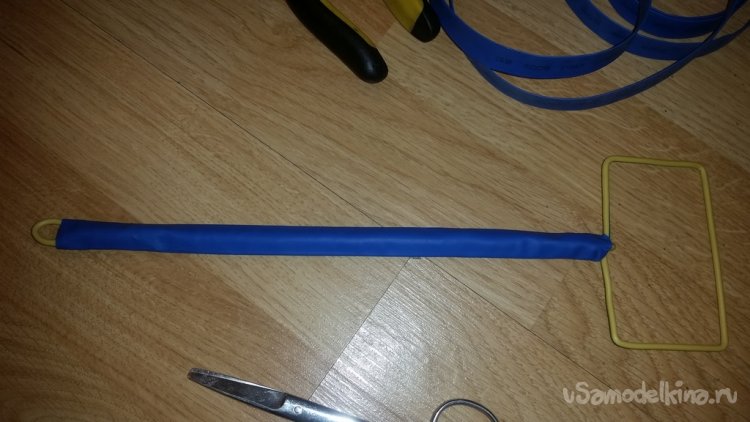 Для нагревания трубки использовал обычный бытовой фен. Получилось здорово! Кстати, связав все жилы проволоки вместе термоусадкой, она по остывании придала еще большую жесткость ручке. Это только приветствуется.