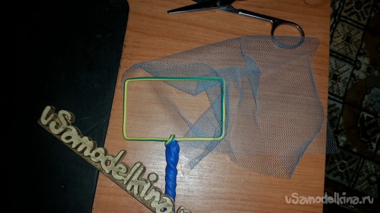 Для начала вырезаю кусочек нужного размера. Этот самый размер определяю по периметру квадратной части сачка. Просто что бы хватило обернуть его.