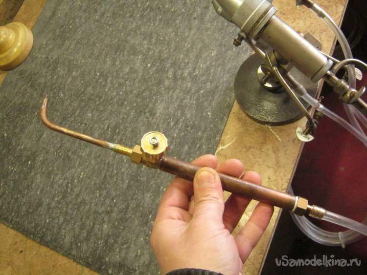 Фото 12. Просушил части горелки, собрал. Кроме прочего, с ручки ободрал веселенькую термоусадку, заменил шток игольчатого краника на лучший, уплотнил его. Появился новый металлический маховичок взамен яркой пластмасски. В целом - суровый челябинский стимпанк.