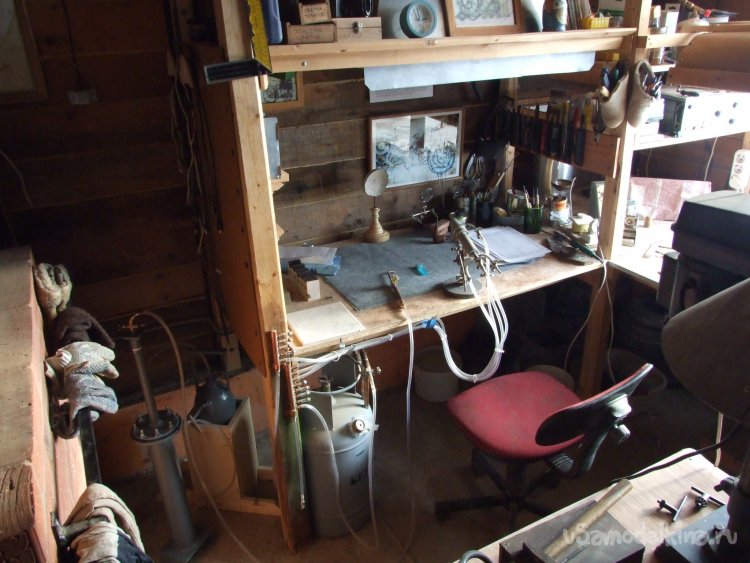 Фото 16. Вид на место, в том числе и для стеклодувных работ. Над столом вытяжка, поверхность застелена листом паронита.