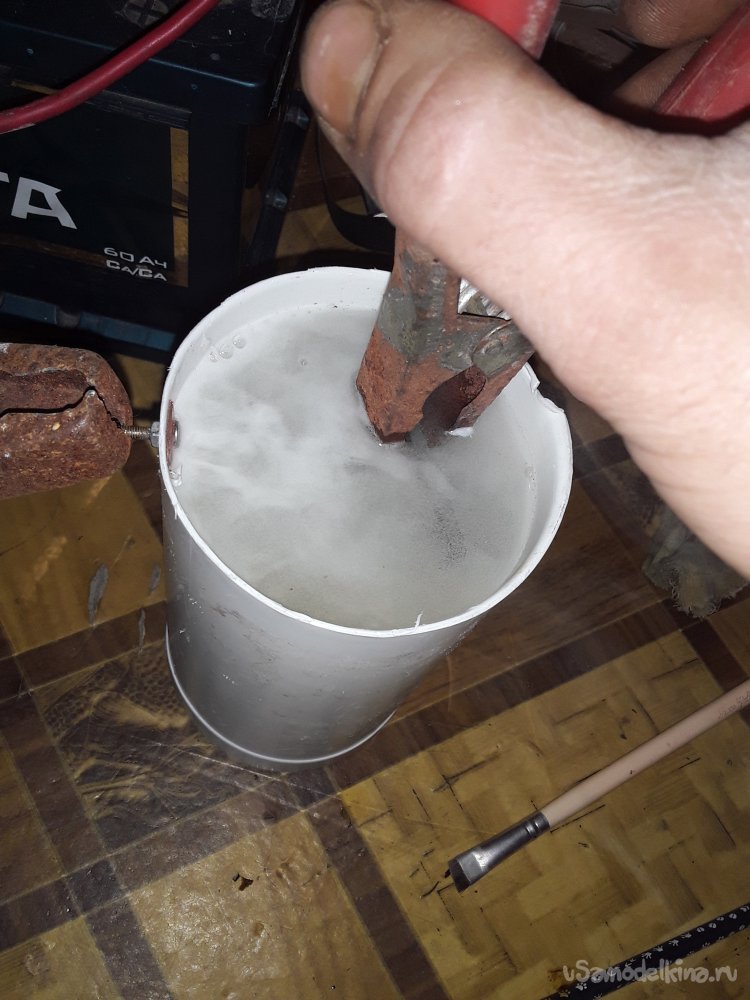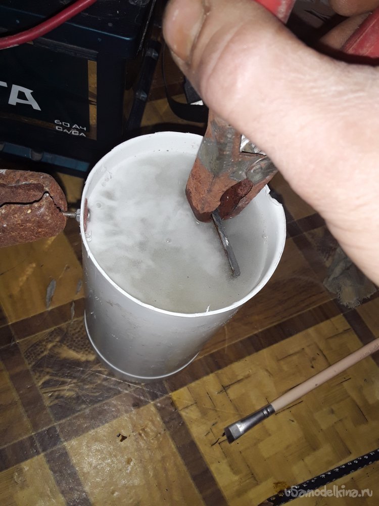 Теперь для того чтобы устройство работало нужен раствор в котором будет происходить травление металла. Опытным путем сделал нужный раствор из 200гр соли и 100гр лимонки на 1л воды, сыпал меньше травление происходит медленнее даже при высоком токе, но мягче. При этом растворе получается самое оптимальное травление по времени и качеству. И так для раствора взял ингредиенты звешал на весах и развел горячей водой и пока все остывает пойду готовить метал.