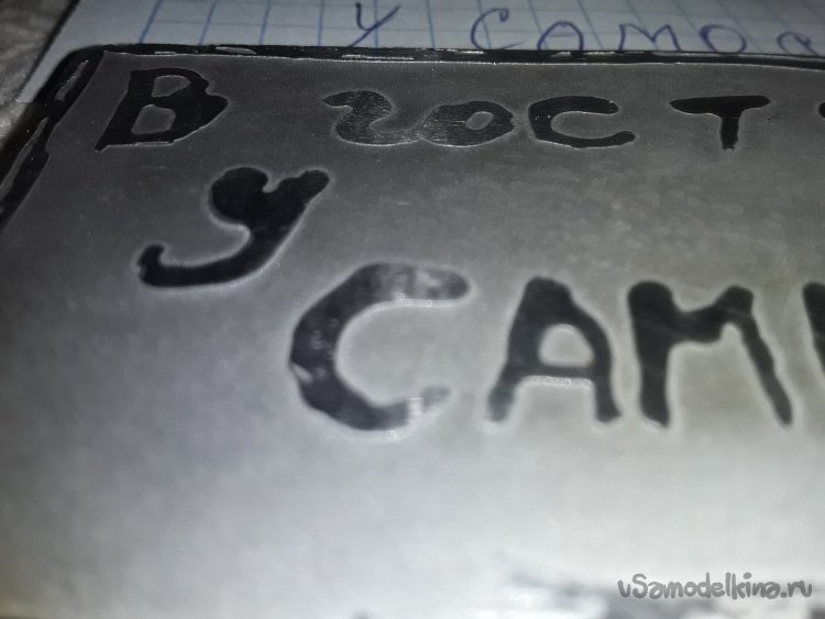 Вот результат 2‑х погружений при травлении с зарядкой результат мне не понравился на следующем фото уже травил акб результат на лицо да и за 3 погружения по 10сек протравку надписи завершил. Погружать нужно постепенно и на равномерном расстоянии от электрода. Да и аккумулятор должен быть хорошо заряженным от этого зависит скорость и качество травления.