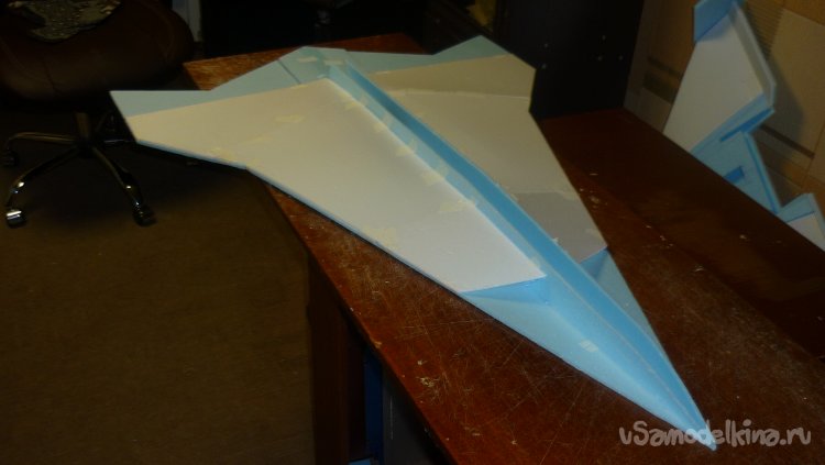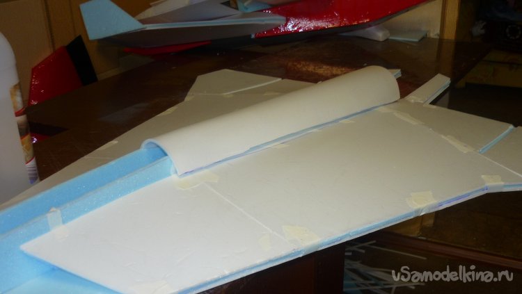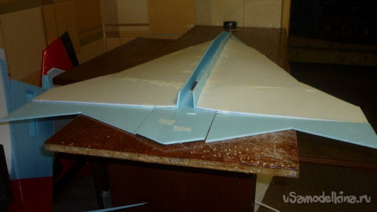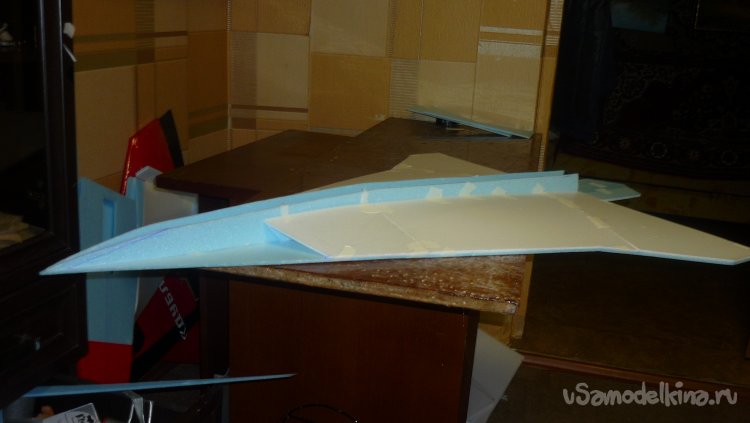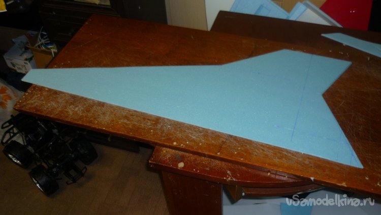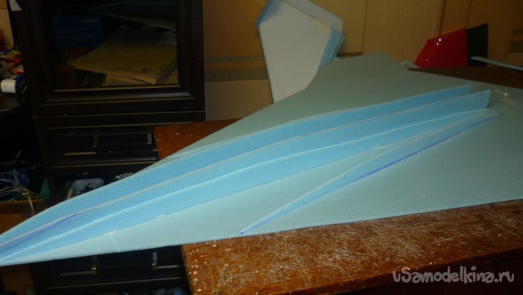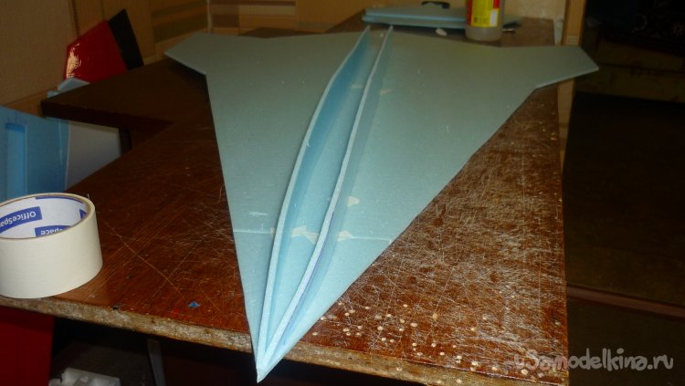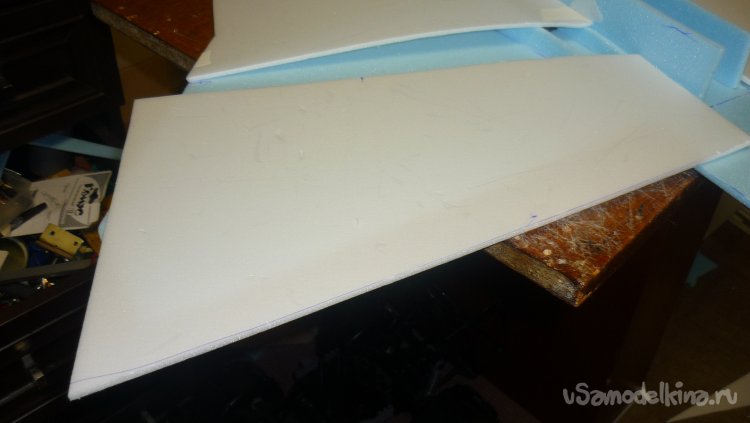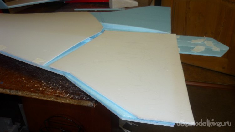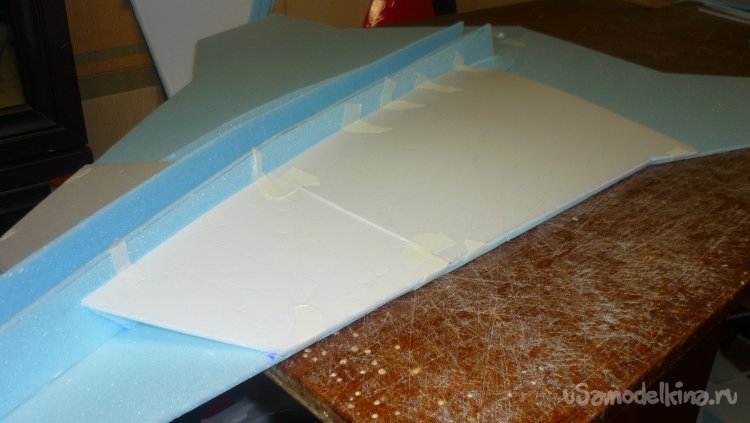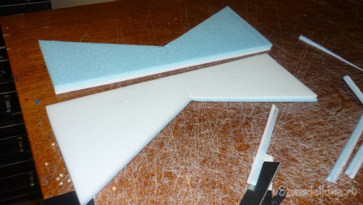 Выкроил из подложки правую и левую половинки несущей плоскости.