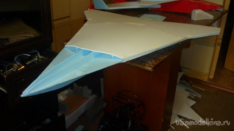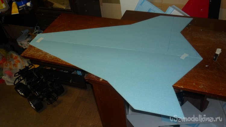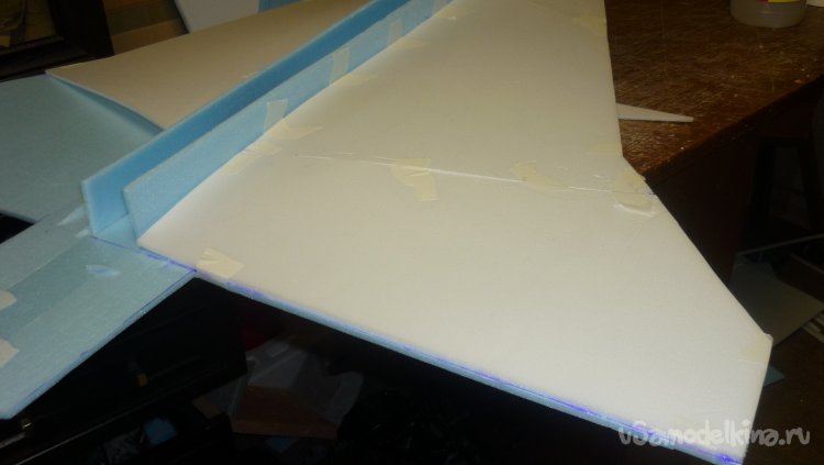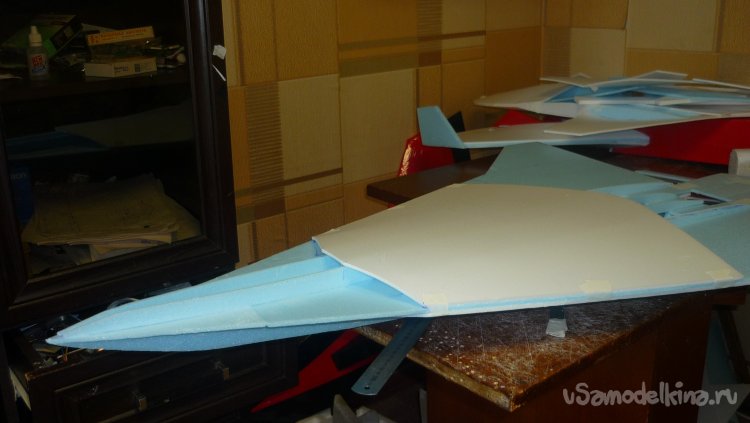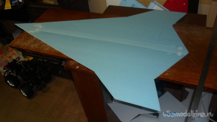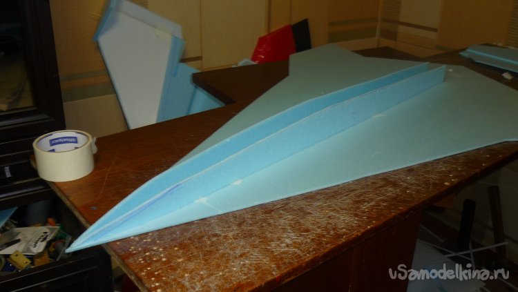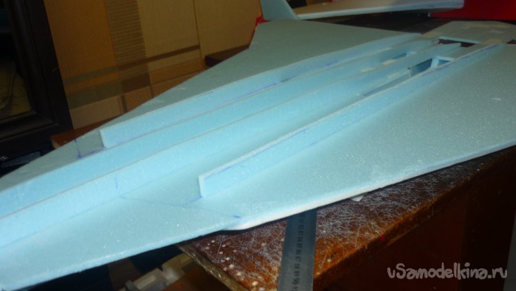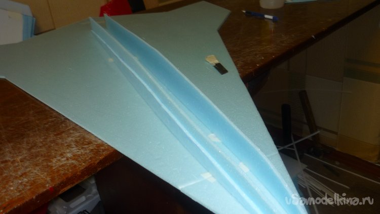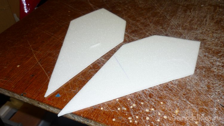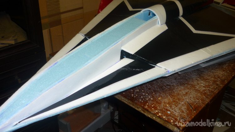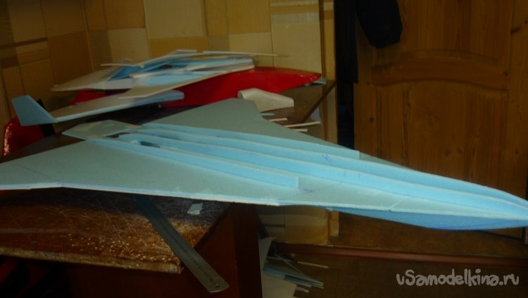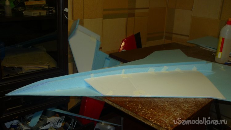 Выкроил из подложки правую и левую половинки несущей плоскости.