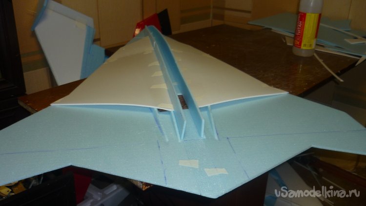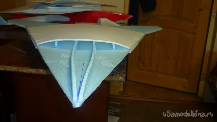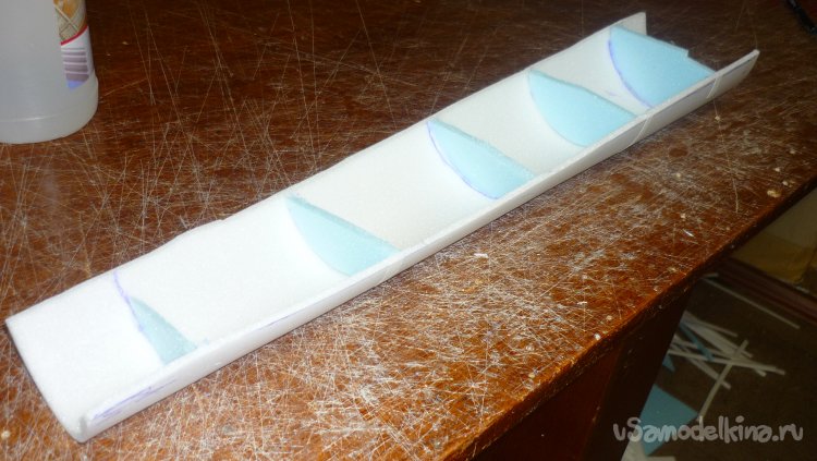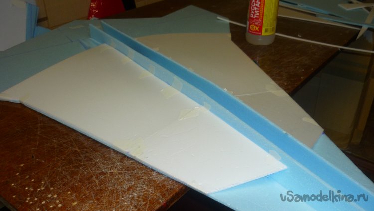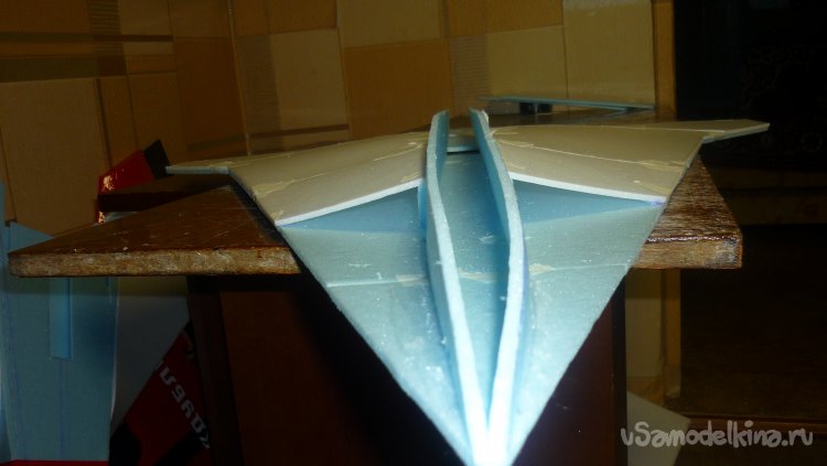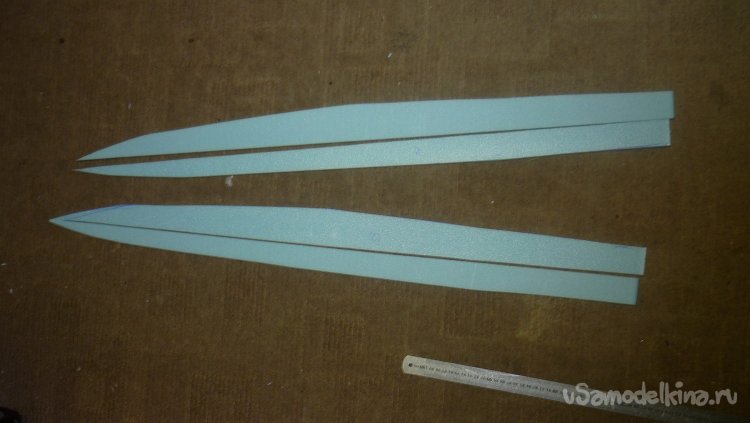 Заготовки для килей склеиваются в два слоя потолочки.