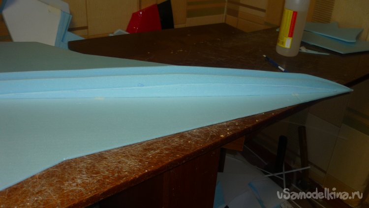 Вырезал из подложки носовую часть несущей плоскости.