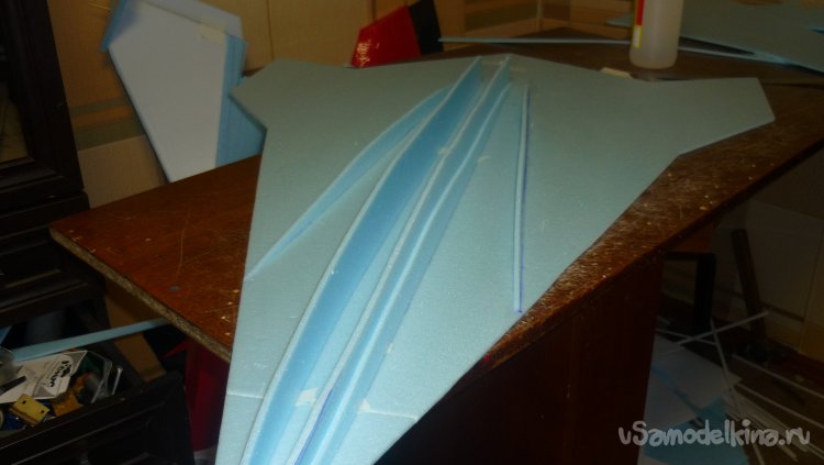 Вырезал заготовки боковых стенок фюзеляжа который находится сверху модели.