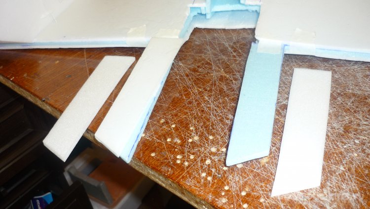 Вырезаю заготовки для элевонов, один слой из подложки, второй слой из потолочки.
