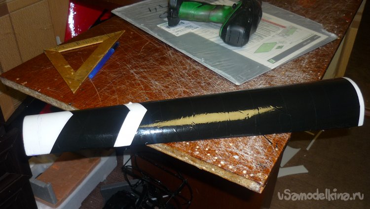 Начинаю обтягивать модель чёрным скотчем.