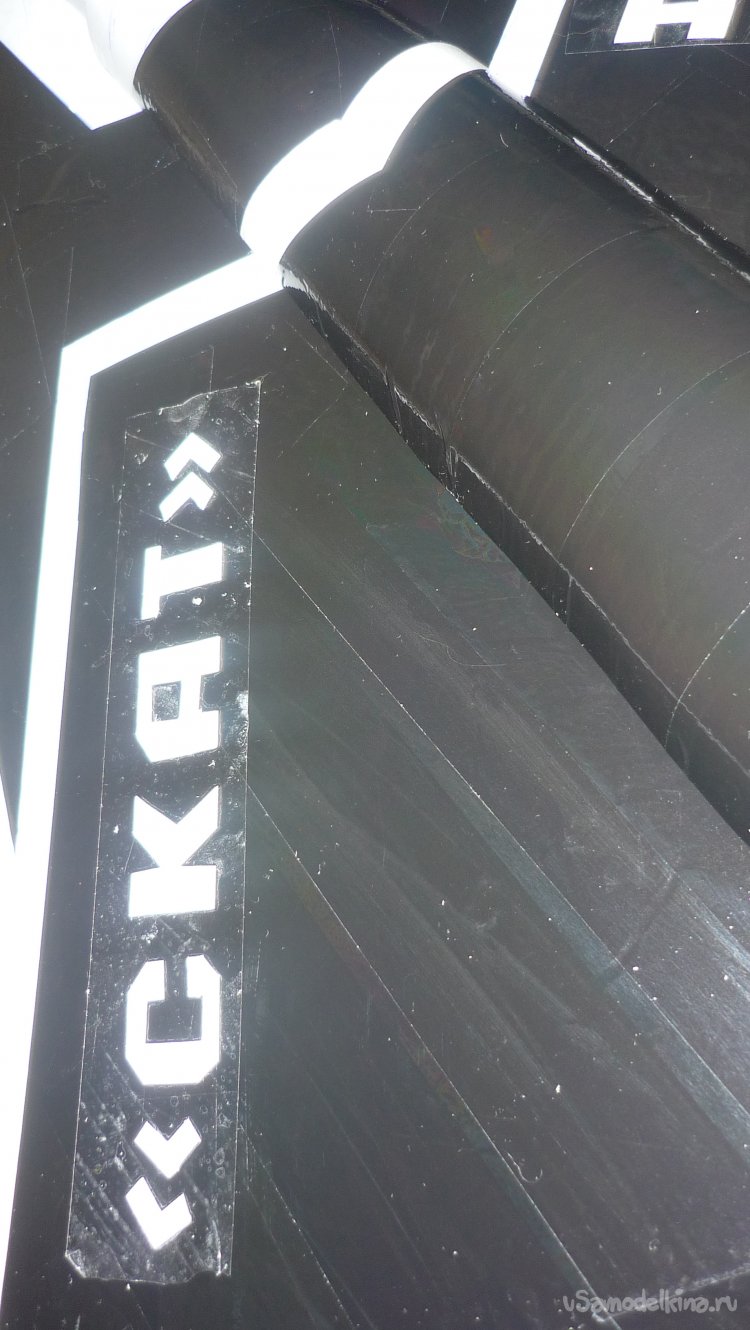 Выкраиваю, подгоняю и монтирую нижнюю, внешнюю обшивку модели в хвостовой части .