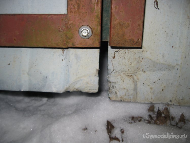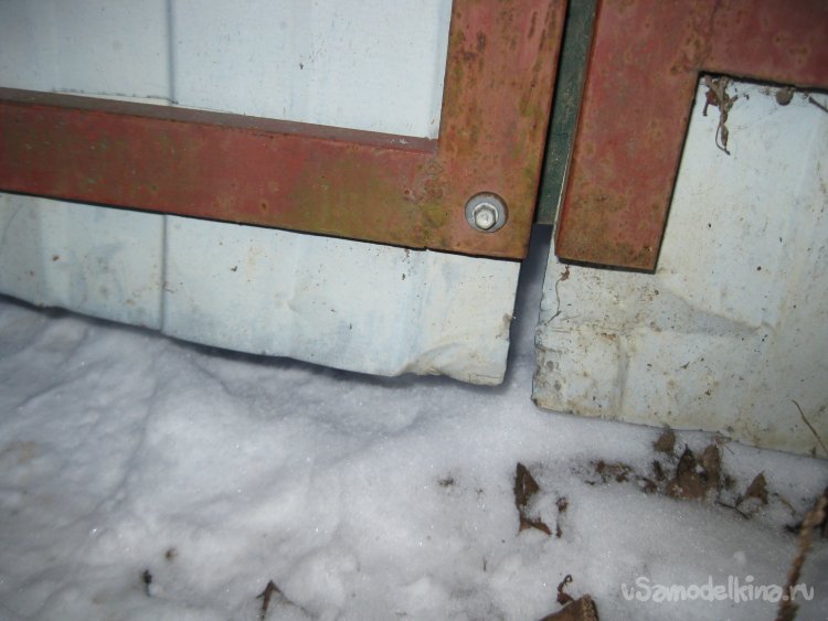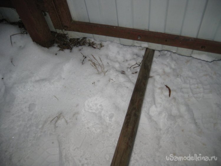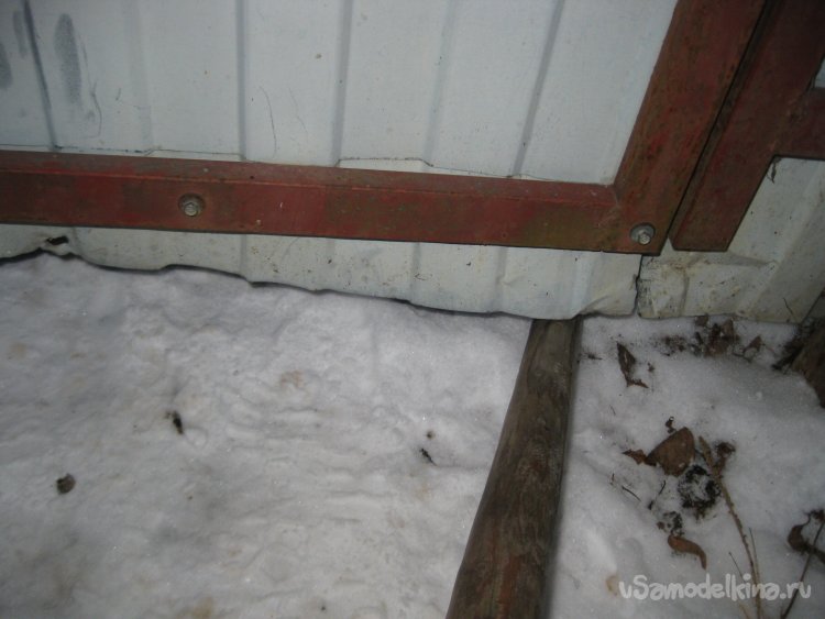 Правда в этот раз, злоумышленники действовали более настойчиво и нагло. Об этом говорит хотя бы тот факт, что они замяли нам все железо снизу садовой калитки.