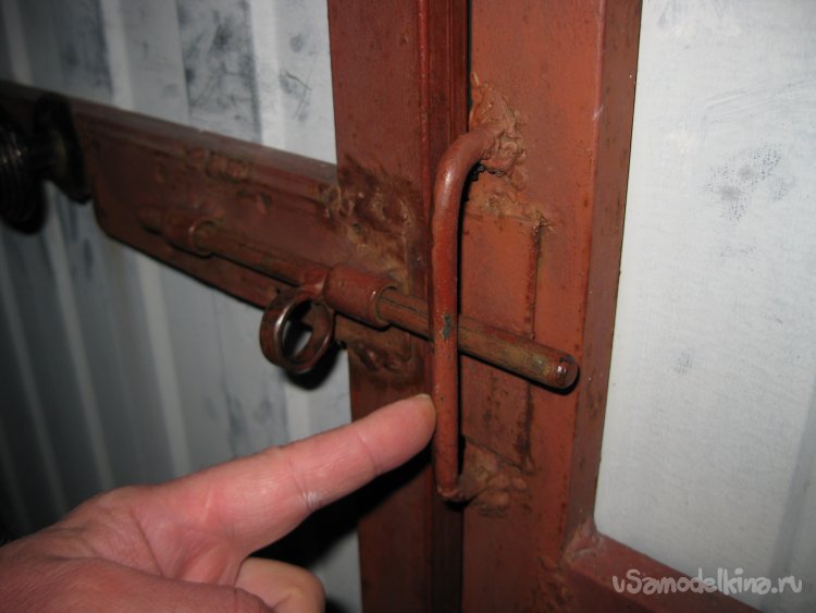 Как видно сама запорная скоба, за которую закрывается засов, у нас весьма длинная.