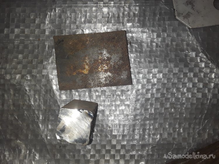 Для основных рабочих частей необходимо использовать металл крепкий и упругий самый идеальный вариант это взять рессорную сталь. Она очень крепкая и не боится ударной нагрузки, но у меня вся сталь пошла в ковку на клинки. Мне очень нравится эта сталь для ковки клинков по этому ее у меня никогда нет. Возможности ее найти пока нет по этому ищу и использую что есть. Для обжимки решил использовать два старых больших ключа лежавших без дела. Сталь тоже не плохая как то делал обжимку немного другого типа и она вполне рабочая сталь в общем не плохая. От ключа разметил и отрезал два куска по 15 см толщена примерно 4мм и края металла 6мм думаю все получится крепким. Далее от 40мм уголка отрезал 2 куска по 10см толщена уголка 3мм. Для крепления в отверстие наковальни у меня нет под размер квадрата и я отрезал от 20мм на 20мм и наварил по краям, метал потом лишнее, подравнял болгаркой. Для упорной площадки отрезал 5см на 5см кусок пластины толщенной 8мм.