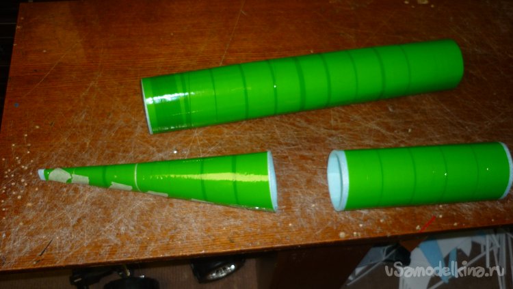 По диаметру импеллера склеиваю вот такие заготовки. Перед склеиванием, обтянул заготовки скотчем, под руки попался зелёный скотч.