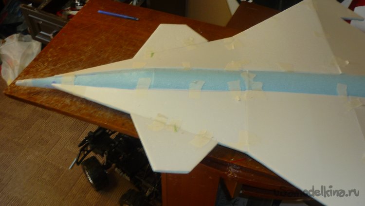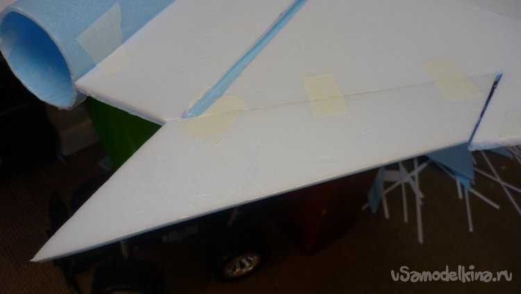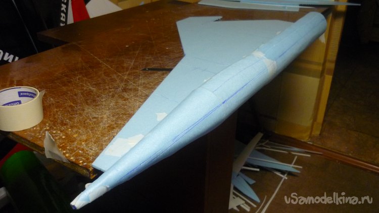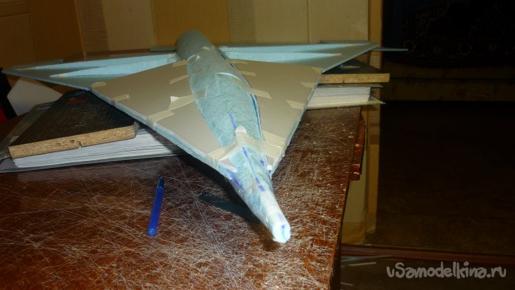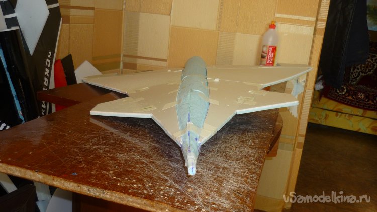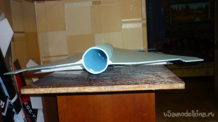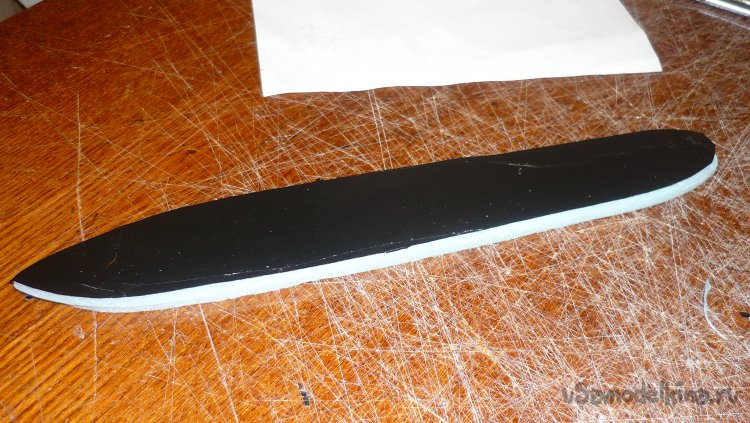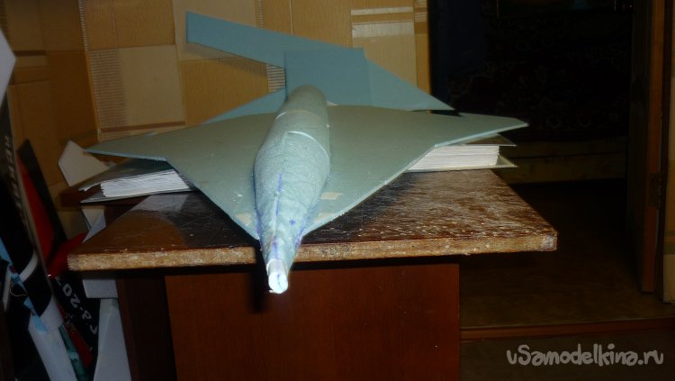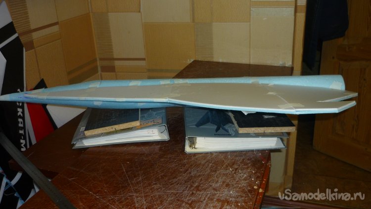 Модель планируется для запуска с руки, но можно смонтировать шасси, для этого с нижней части модели вклеены кусочки 3 мм. фанеры.