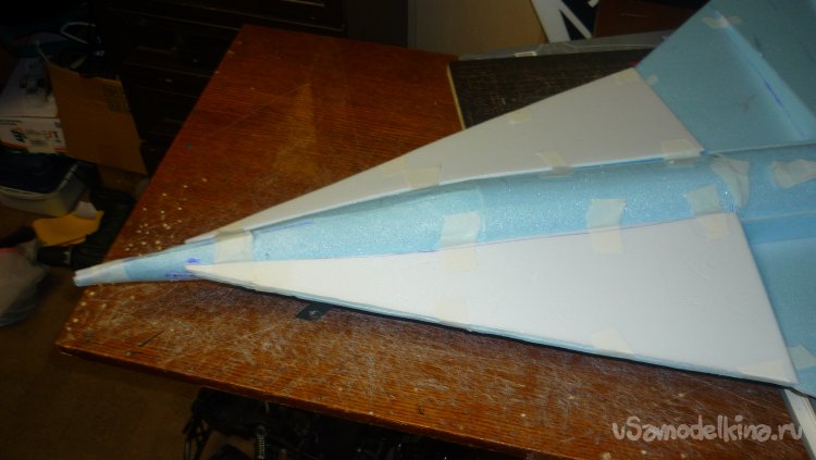 В носовой части заготовок нижней обшивки вклеил косынки, потому как носовая часть фюзеляжа имеет коническую форму.