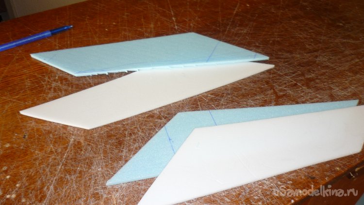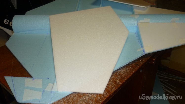 Из подложки вырезаю заготовки для нижней обшивки крыла.