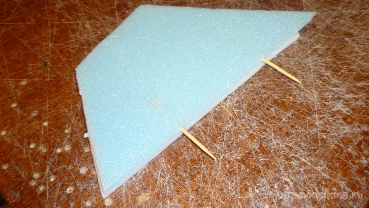 При склеивании двух слоёв ПГО, вставляю деревянные зубочистки, для монтажа с крылом.
