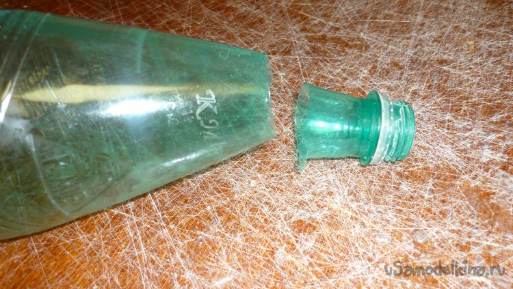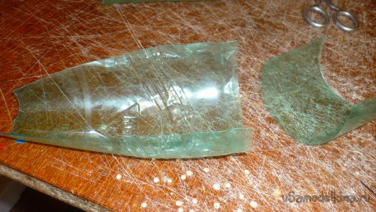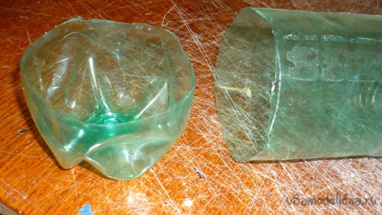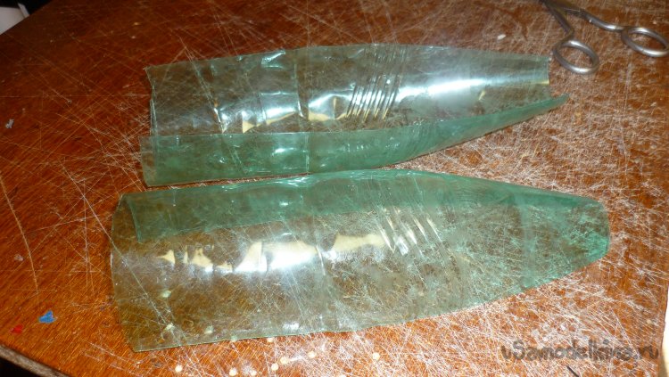 Разрезаю бутылку вдоль, по еле заметной риске от формовки. Получаю две одинаковые половинки.