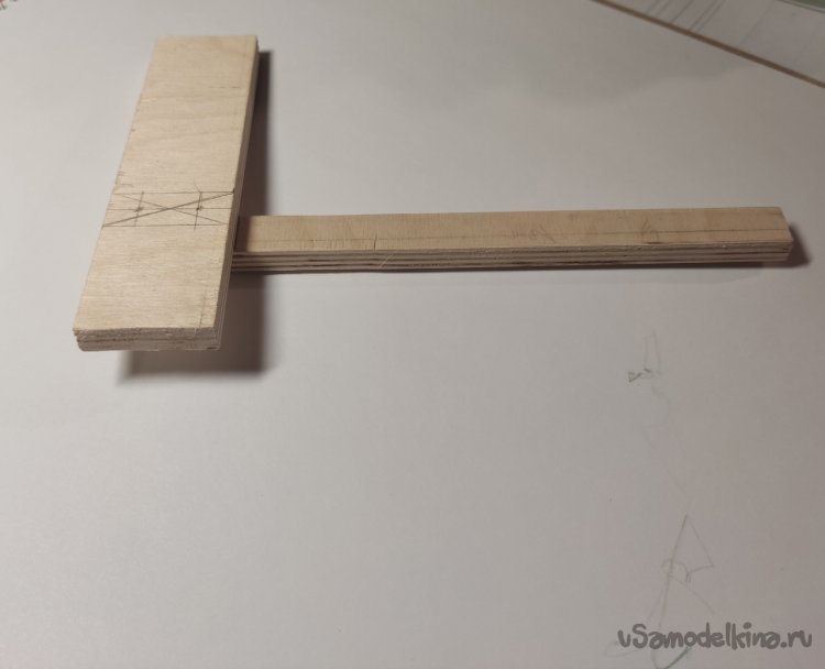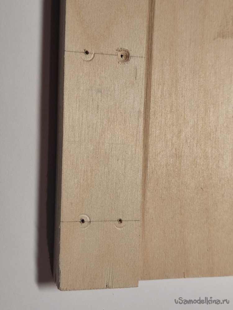 1) этот элемент состоит из двух деталей: первая – прямоугольник с размерами 10×195×15 миллиметров; вторая – это прямоугольник с размерами 10×126× 35 мм. Выпилив делали, соединяем их перпендикулярно друг другу на космофен.