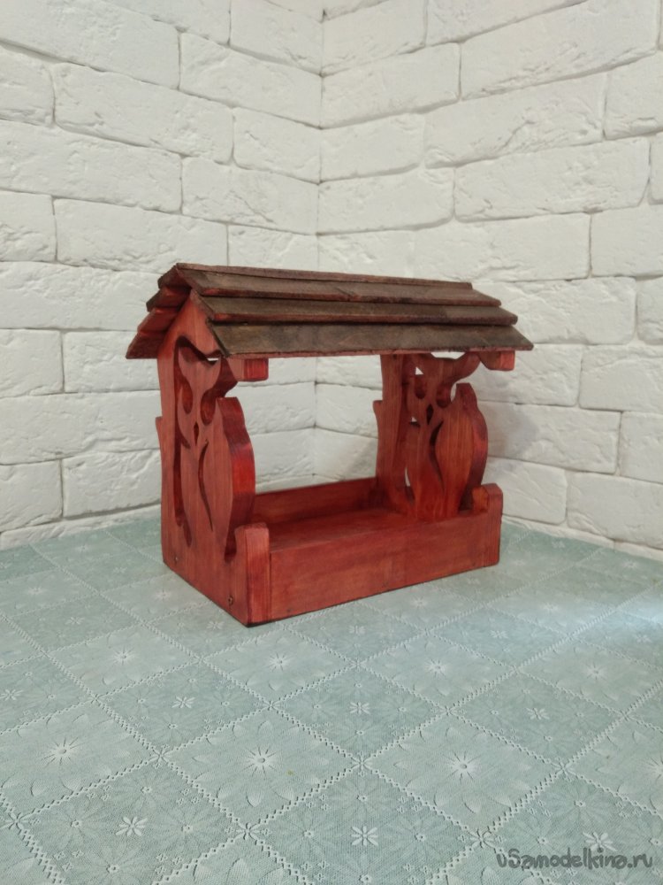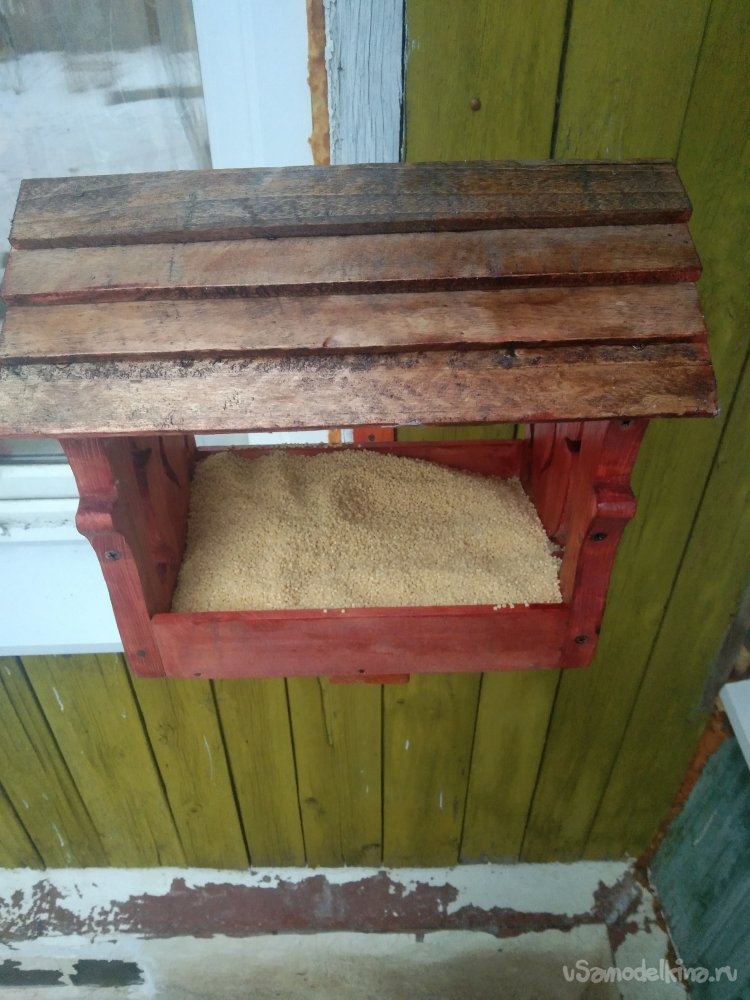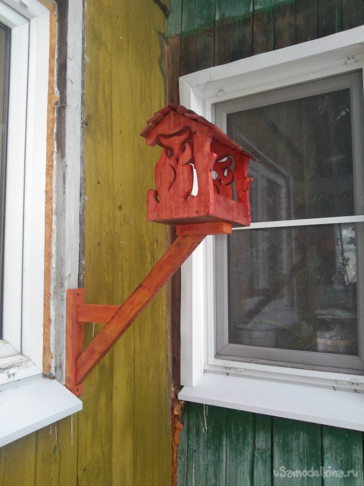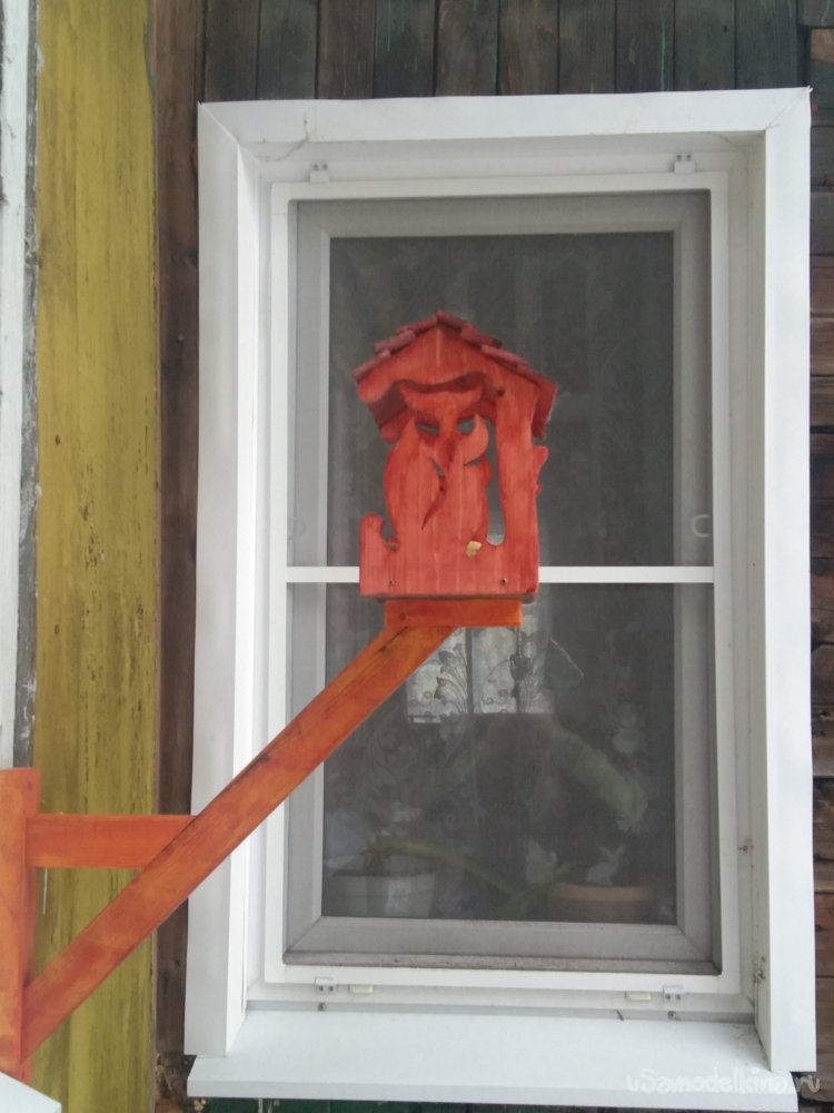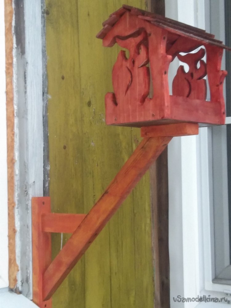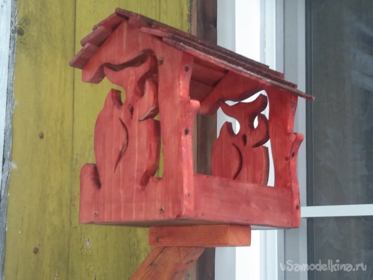 Вот как выглядит кормушка в сборе, уже покрашенная: