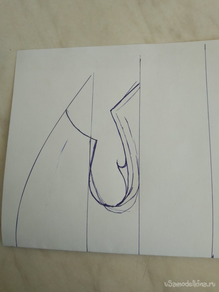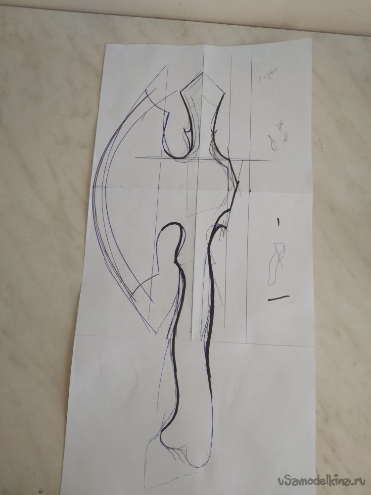 Для начала мне понадобился чертеж. Полазил по интернету, но ничего интересного для себя я не увидел. Поэтому решил нарисовать самостоятельно. Для основы чертежа я использовал несколько листов бумаги формата А4. Склеил их между собой и приступил к разработке. По фотографиям видно как происходил этот процесс и что получилось в конечном итоге)