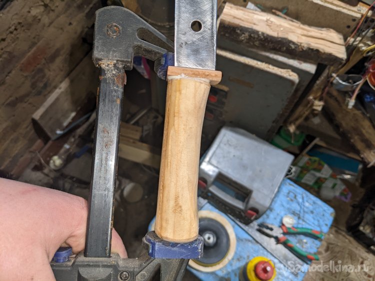 Из него методом шлифовки выгрызаем подходящею для нашей заготовки рукоять.