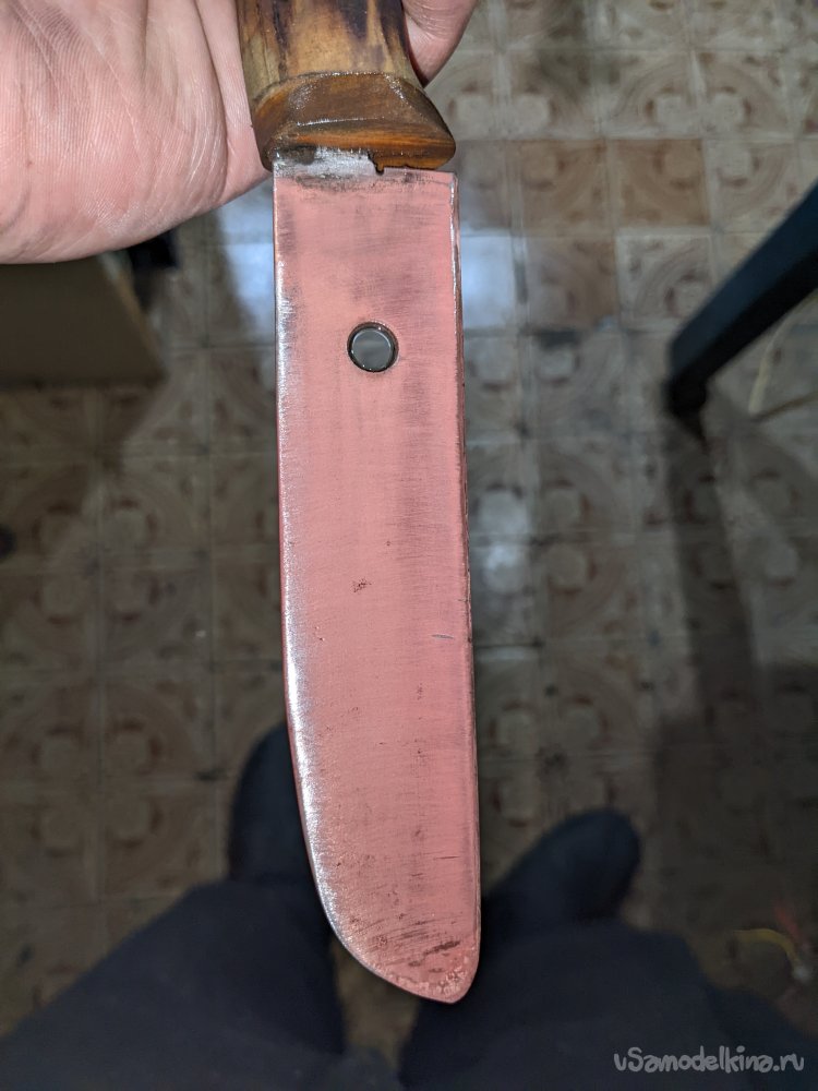 Сам клинок сделан из чёрного металла так что его нужно покрыть чем-то, и это чем-то будет медь.