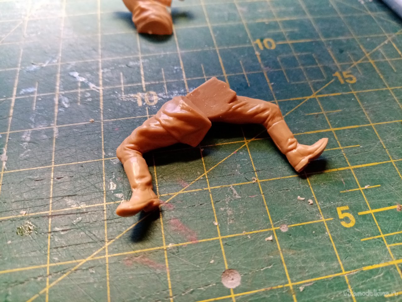 Подгоняю места склейки ног. Они не слишком плоские и при соединении могут образоваться щели. Подогнать и хорошо склеить на этом этапе значительно лучше, чем потом использовать шпаклевку.