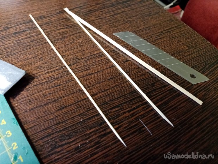 Бамбуковую шпажку расщепил на тонкие лучины. Удобно наносить клей.